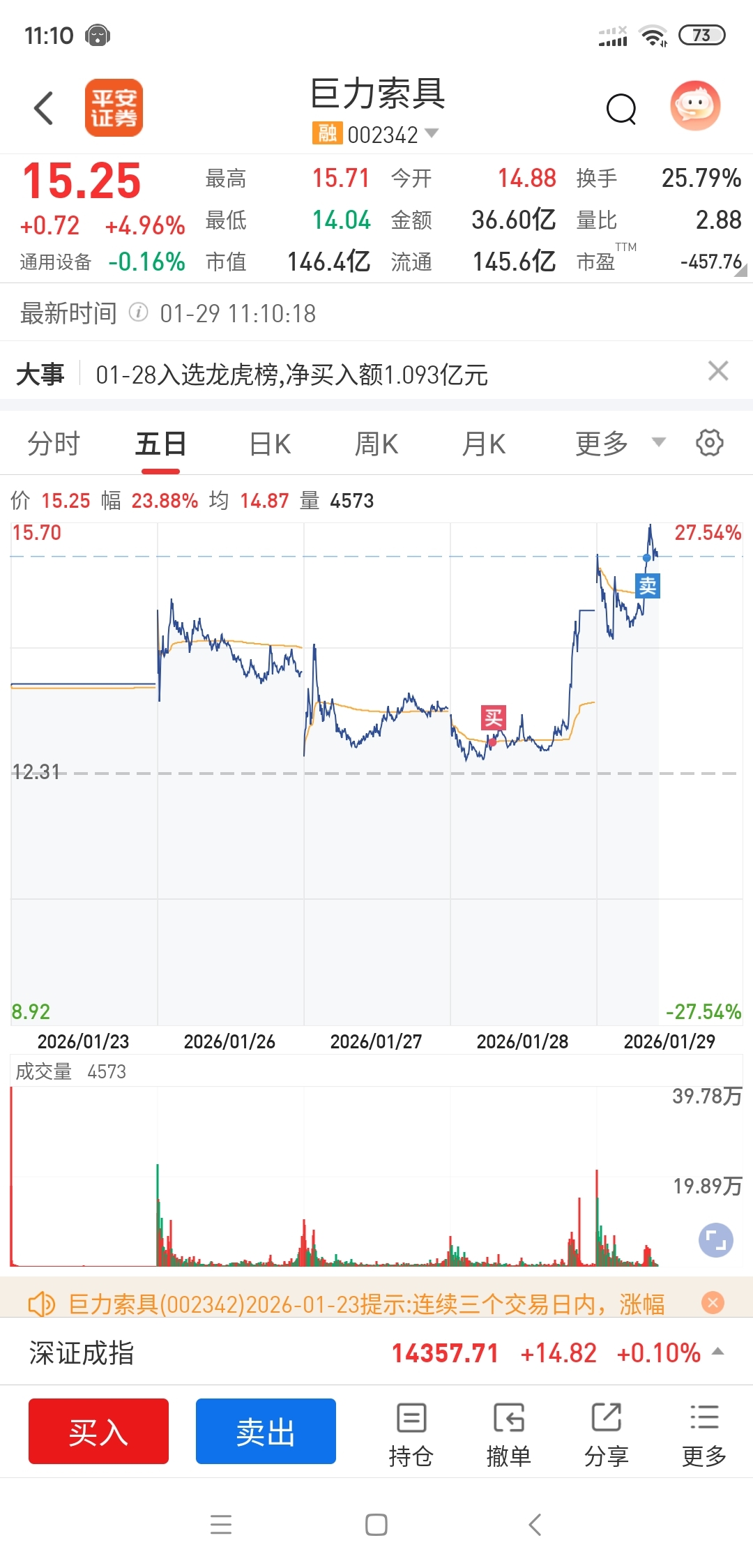 $巨力索具(SZ002342)$ 不能贪心两天将近18个点可以了