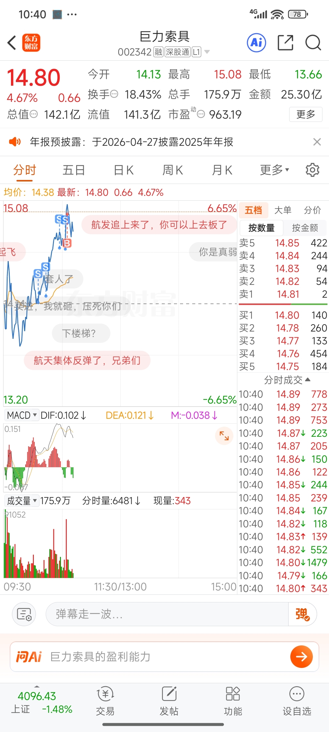 $巨力索具(SZ002342)$ 我也是醉了,我不卖他就不涨,我不买他就不跌,这T做的把我都逗笑了。