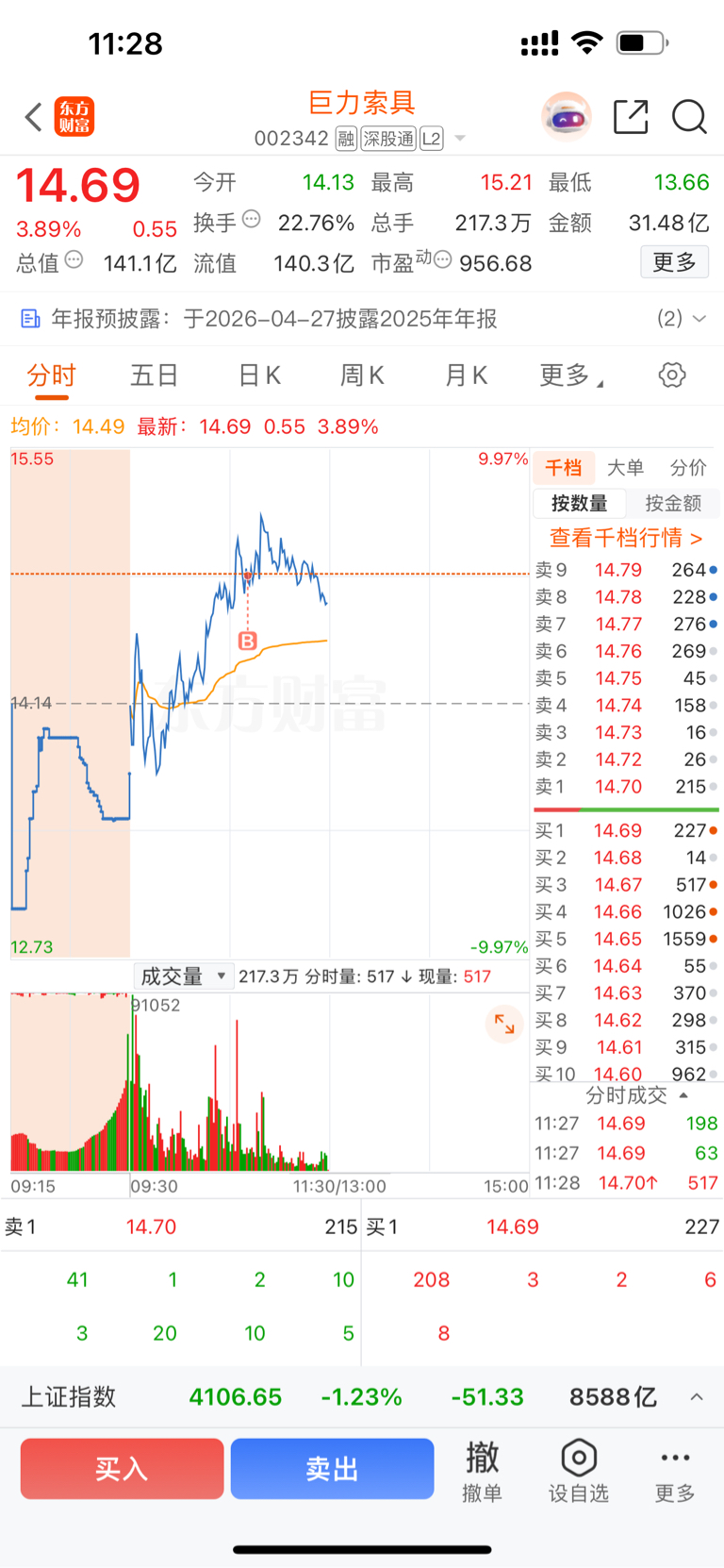 $巨力索具(SZ002342)$ 好可惜 刚才没一鼓作气封上去 现在越走越弱了