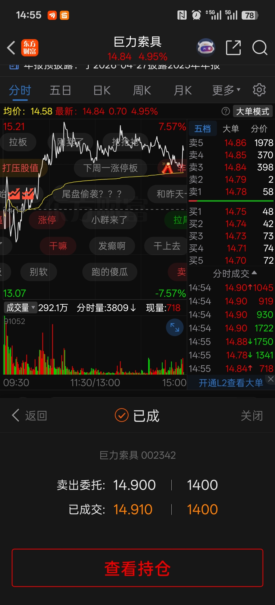 $巨力索具(SZ002342)$ 这样子玩不要命啦