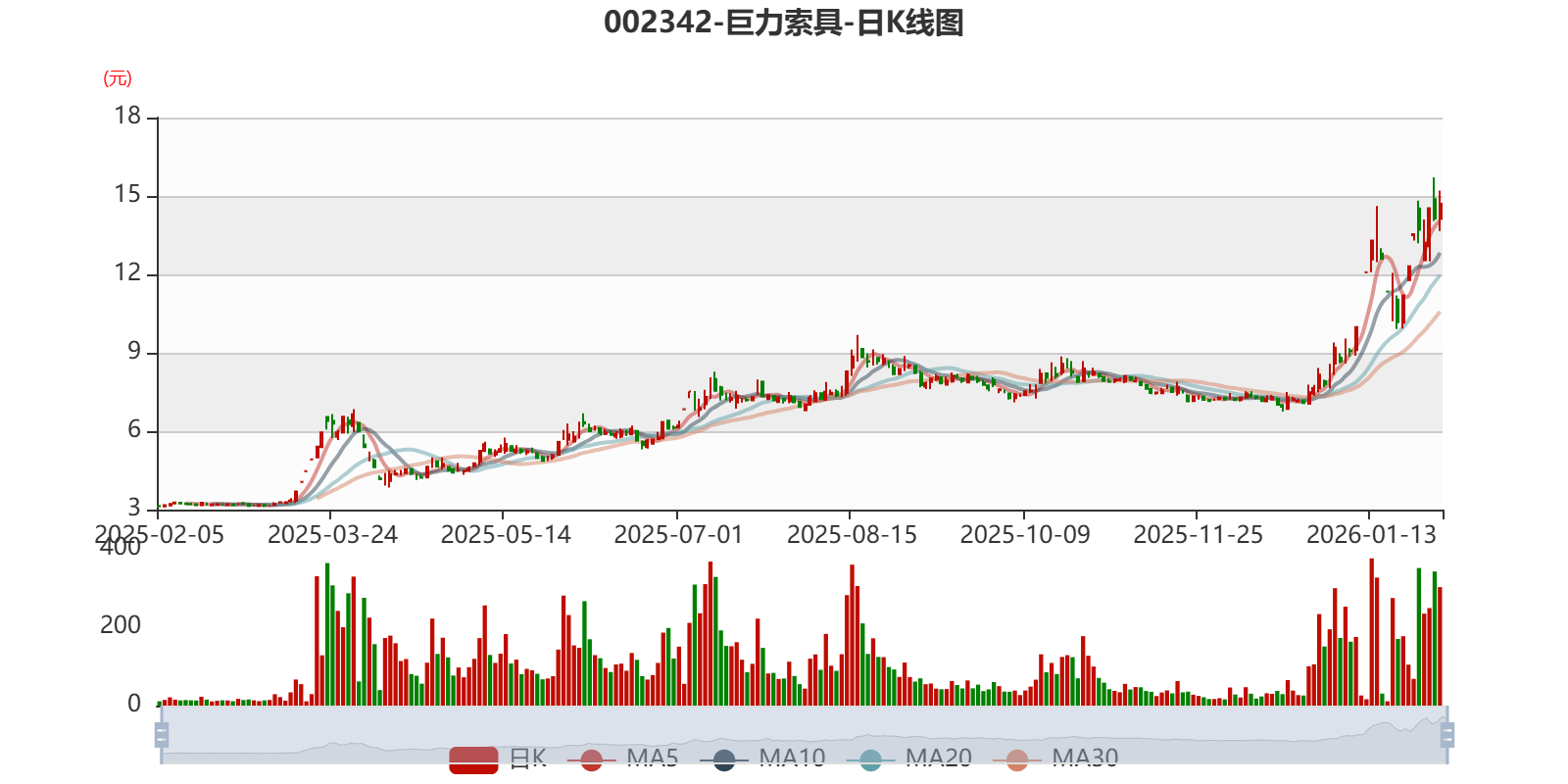 中证智能财讯巨力索具(002342)1月30日晚间披露2025年度业绩预告,预计2025年归母净利润1600万元至2100万元,上年同期亏损4681.07万元;扣非净利润预计1351万元至1851万元,上年同期亏损5534.08万元;基本每股收益0.0167元/股-0.0219元/股。以1月30日收盘价计算,巨力索具目前市盈率(TTM)约为672倍-882倍,市净率(LF)约5.8倍,市销率(TTM)约5.84倍。