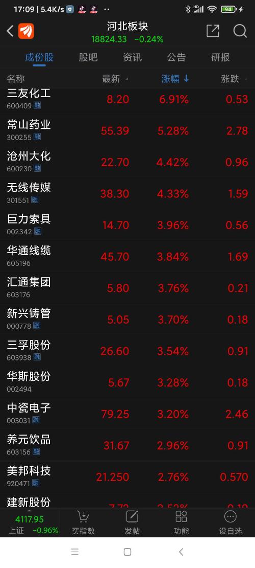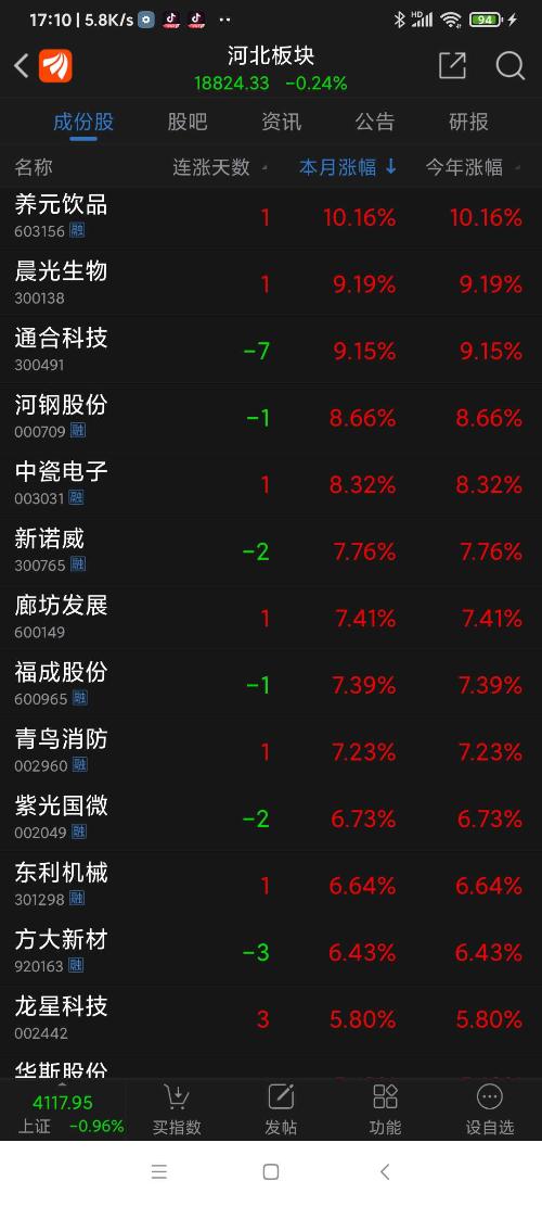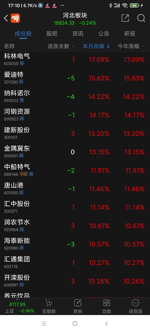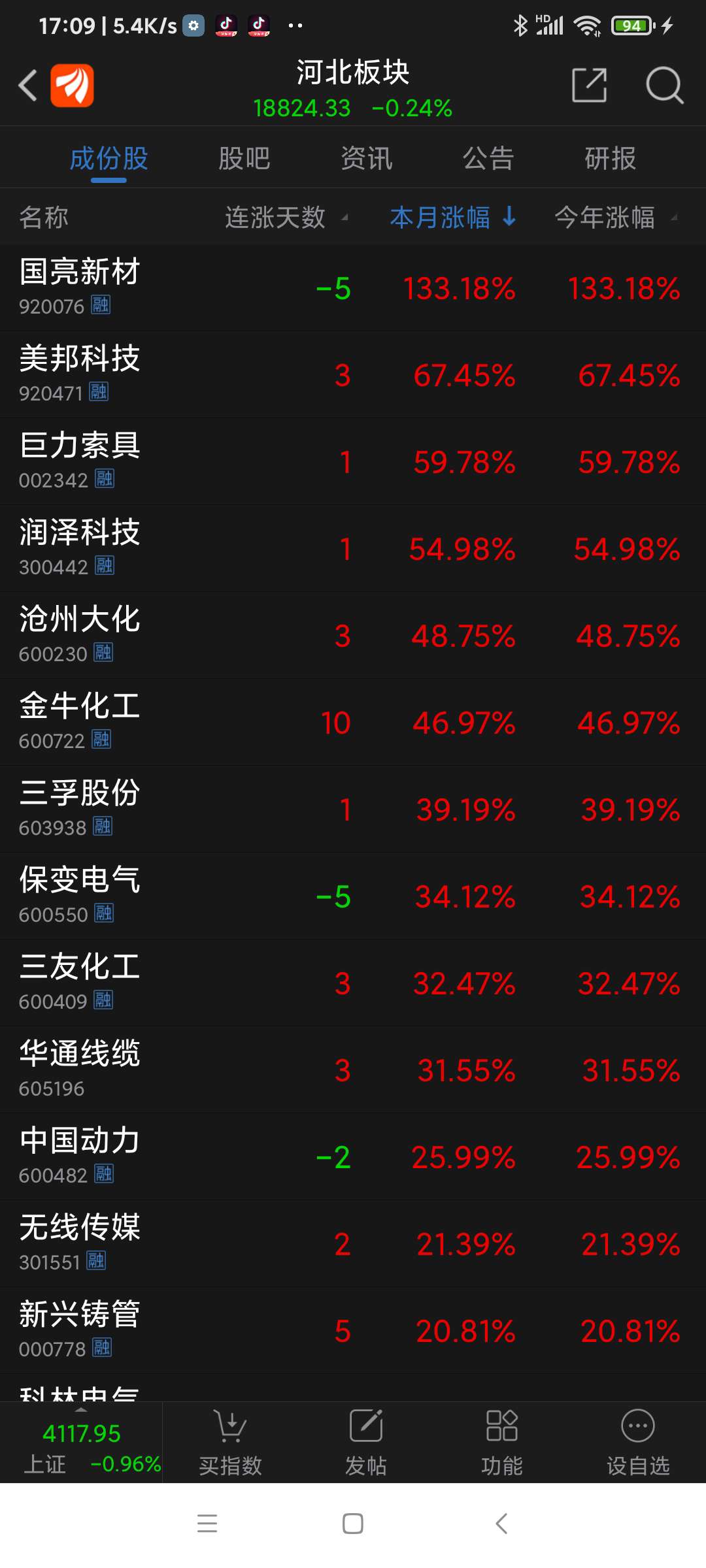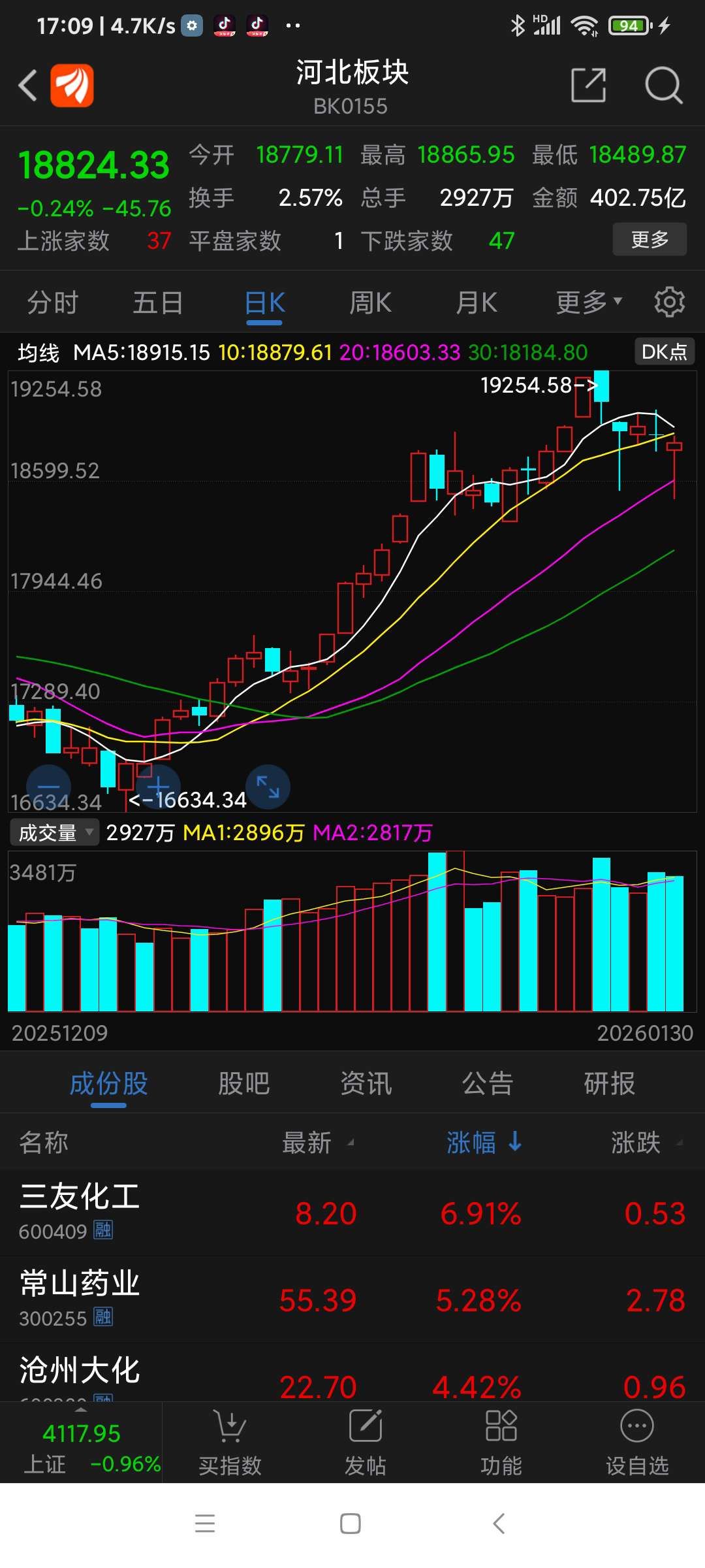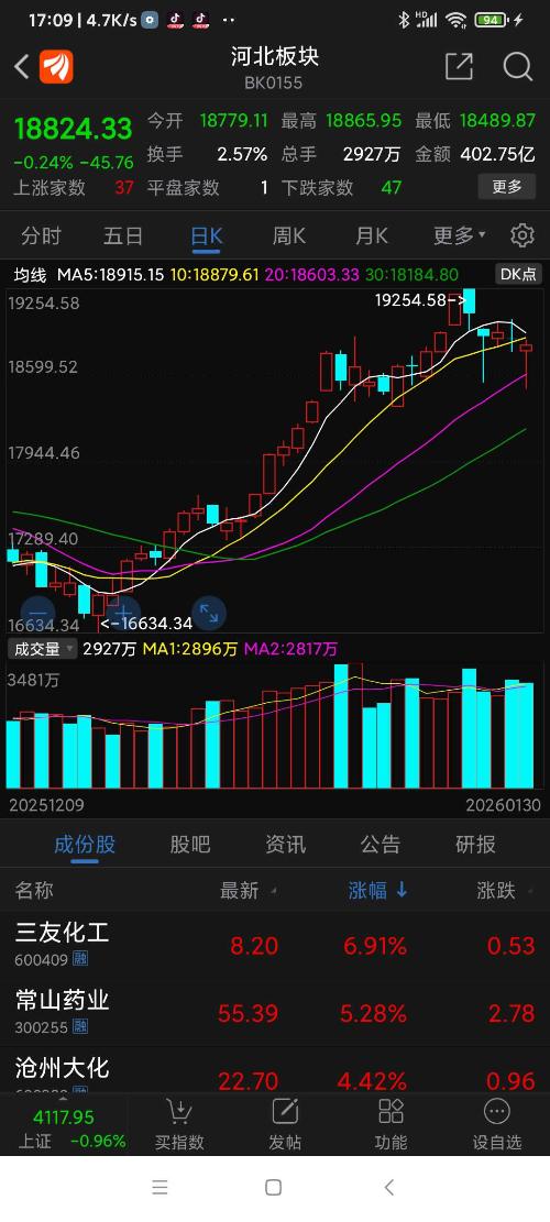 河北板块26年元月涨幅%,巨力索具名列河北板块(共有85个股票)涨幅第一名(沪深板块)。