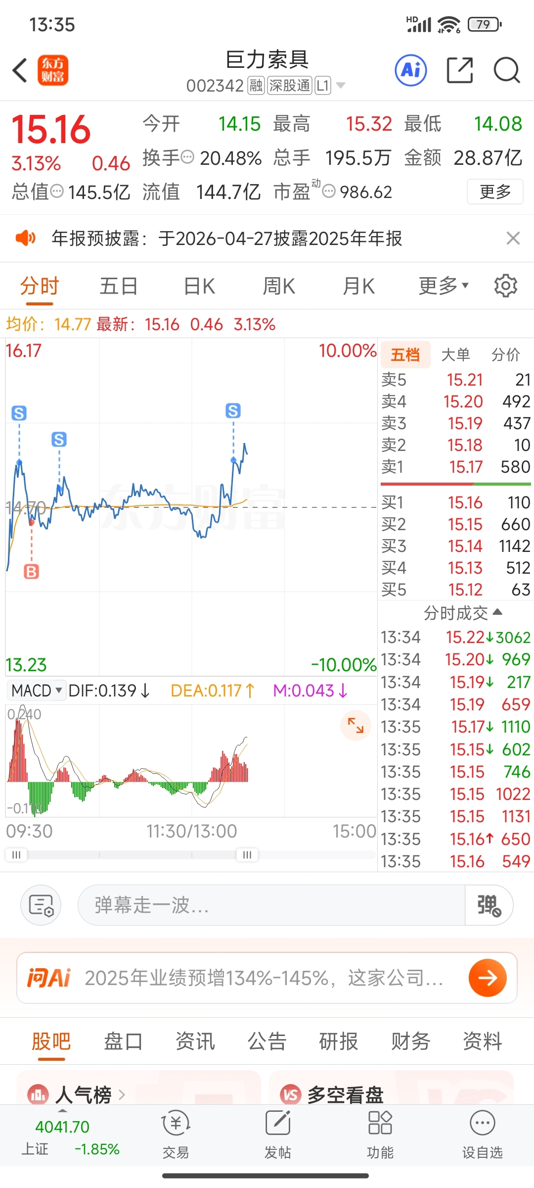 $巨力索具(SZ002342)$ 节前打算分批慢慢卖出了