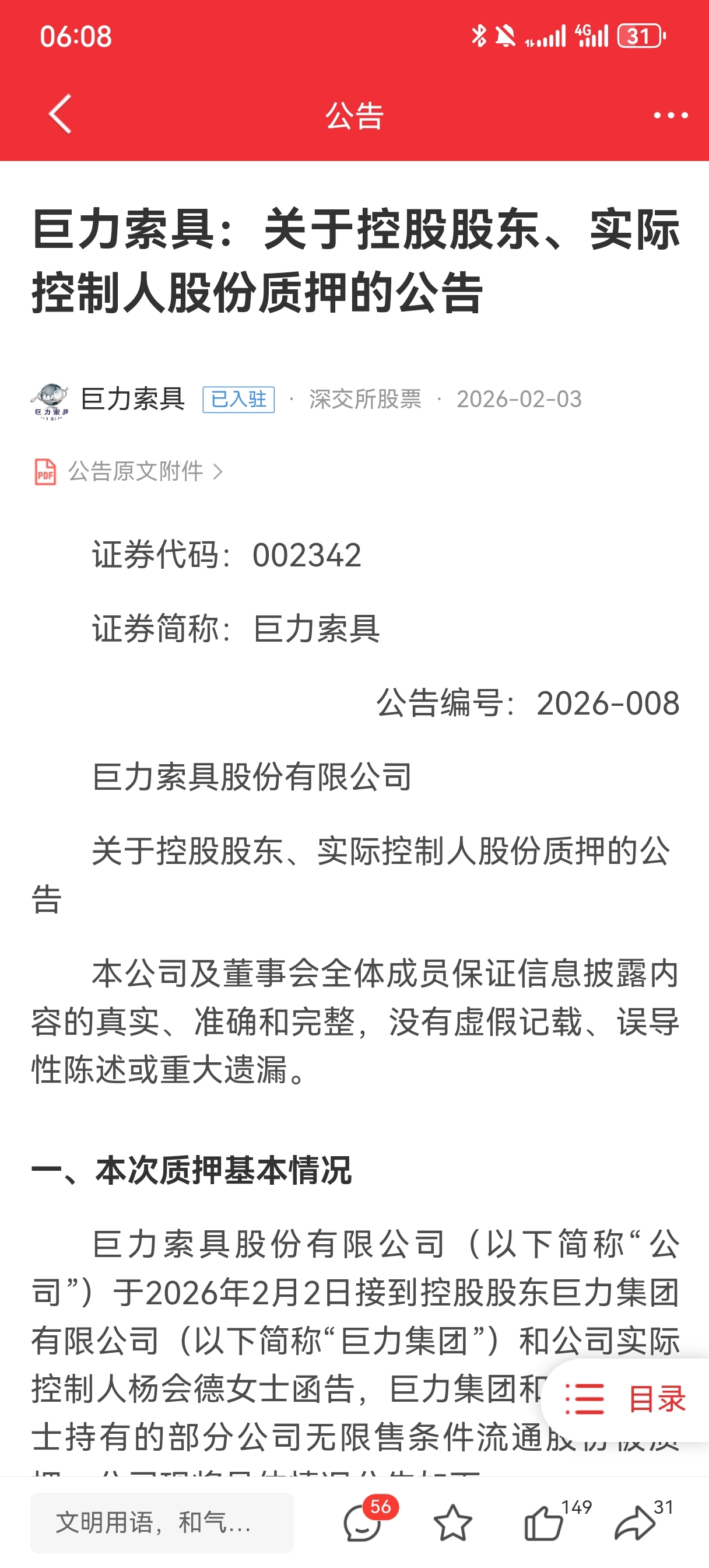 $巨力索具(SZ002342)$ 这个质押公告属于利好还是利空啊??