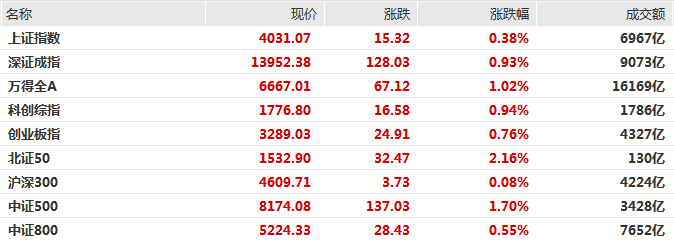 总体看,沪深两市半日成交额1.6万亿,较上个交易日缩量385亿。全市场超4400只个股上涨。