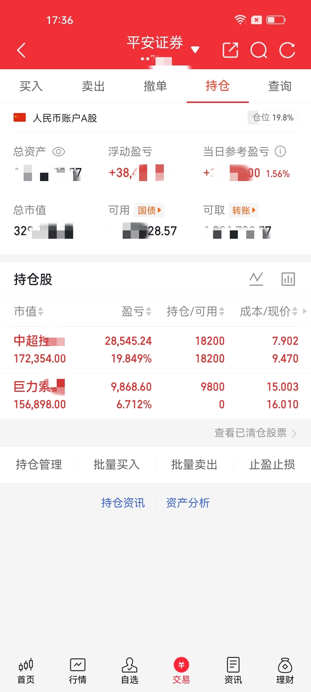 今日持仓:$中超控股(SZ002471)$