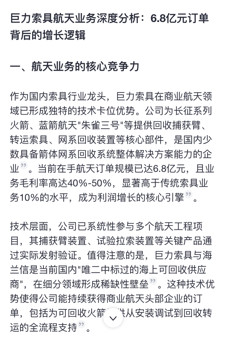 $巨力索具(SZ002342)$ 我来做搬运工,今天继续板带领航天回流