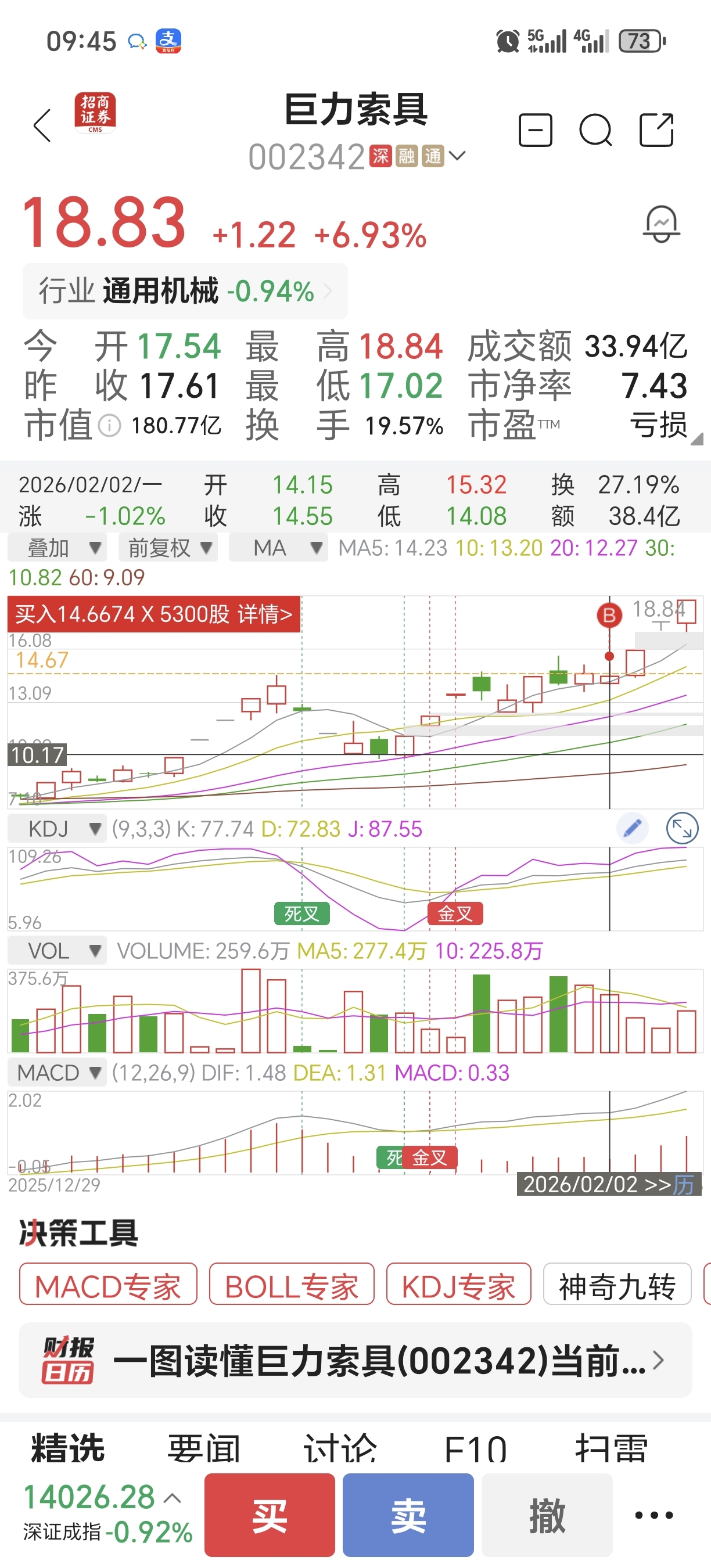 $巨力索具(SZ002342)$ 18.67清仓了,兄弟们发财。