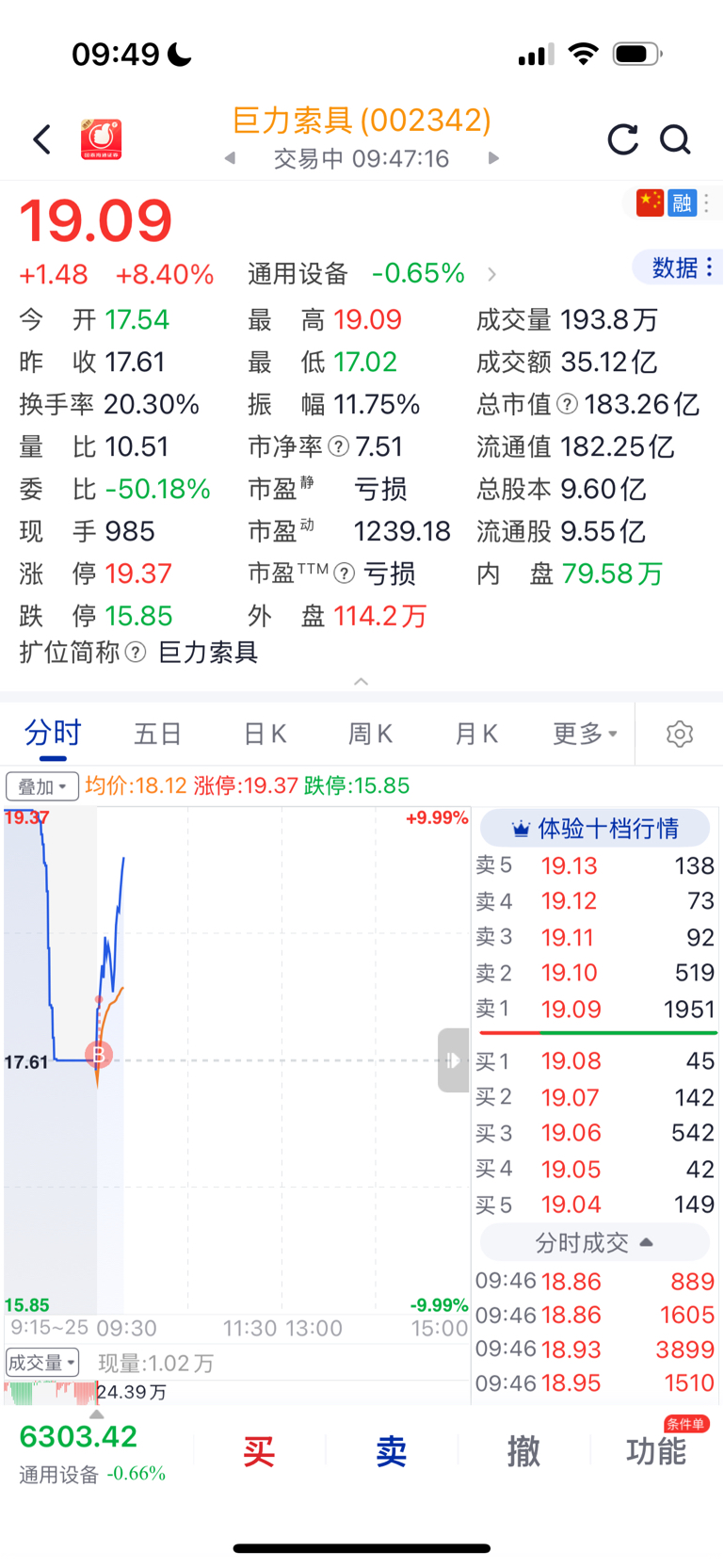 $巨力索具(SZ002342)$ 今天买明天还有机会跑吗