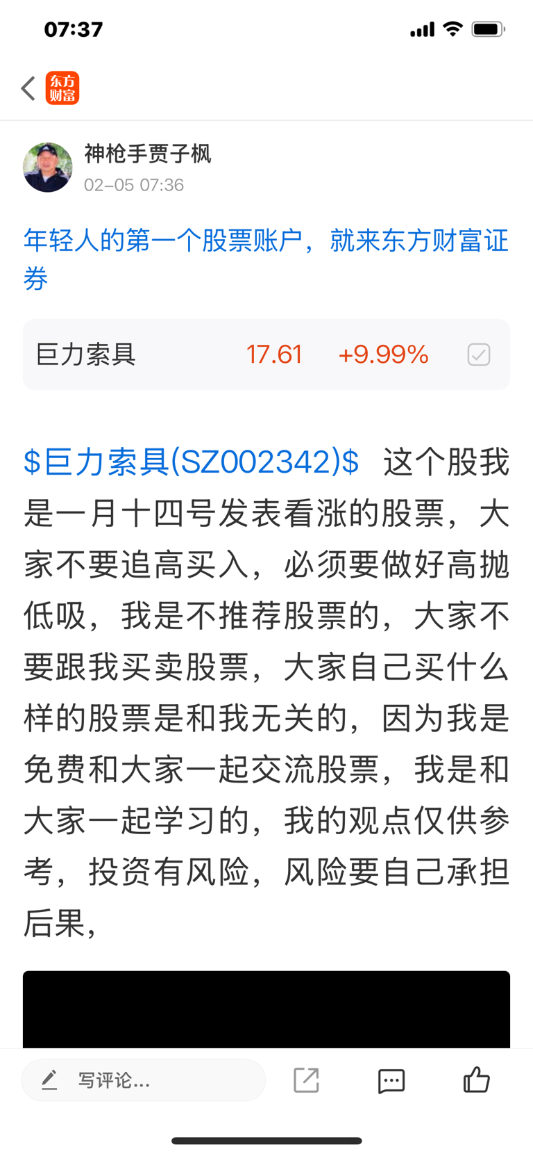 $巨力索具(SZ002342)$ 这个股是我一月十四号发表文章看涨的股票,大家不要追高买入,必须要做好高抛低吸,我是不推荐股票的,大家不要跟我买卖股票,大家自己买什么样的股票是和我无关的,因为我是免费和大家一起交流股票,我是和大家一起学习的,我的观点仅供参考,不构成任何投资建议,投资有风险,风险要自己承担后果,