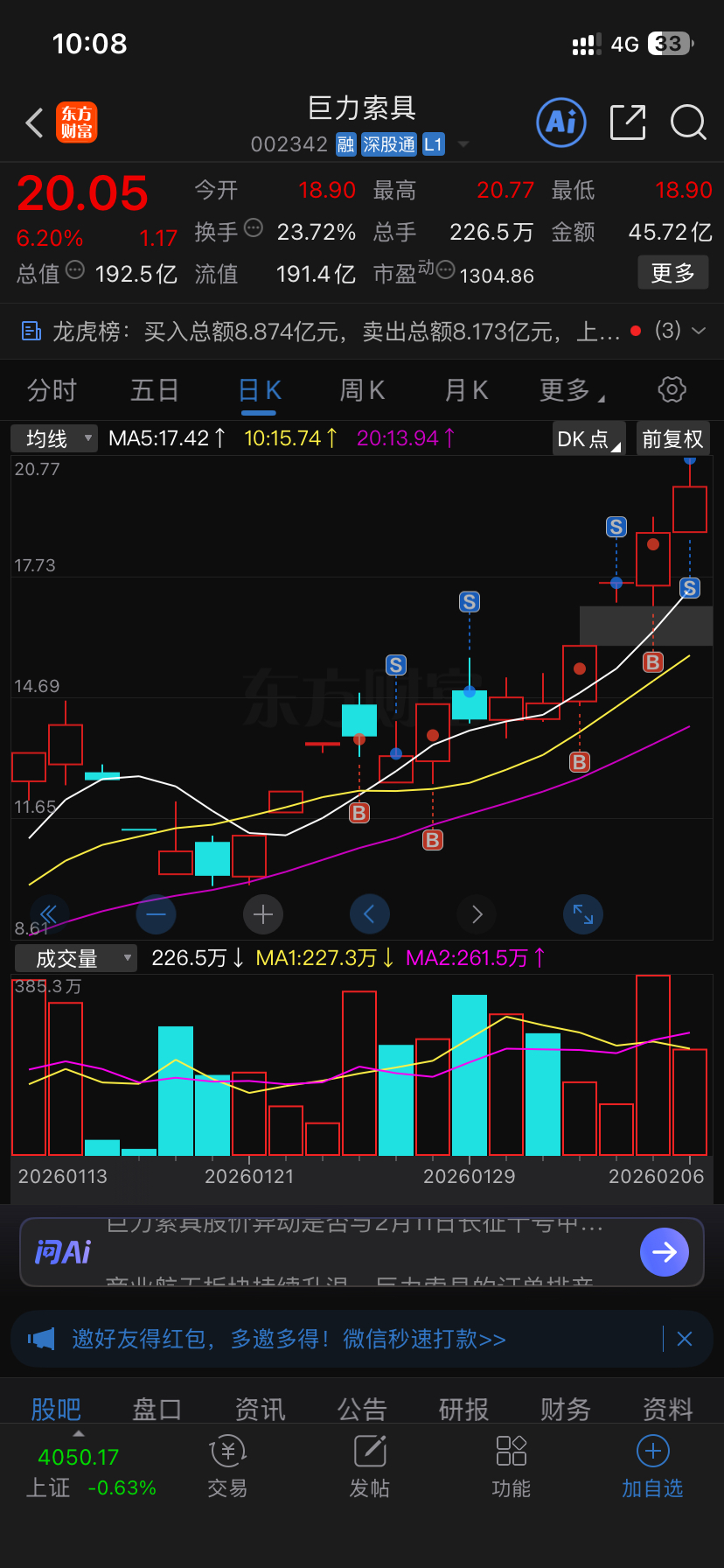 $巨力索具(SZ002342)$ 卖飞了 回收成功起码一百个涨停