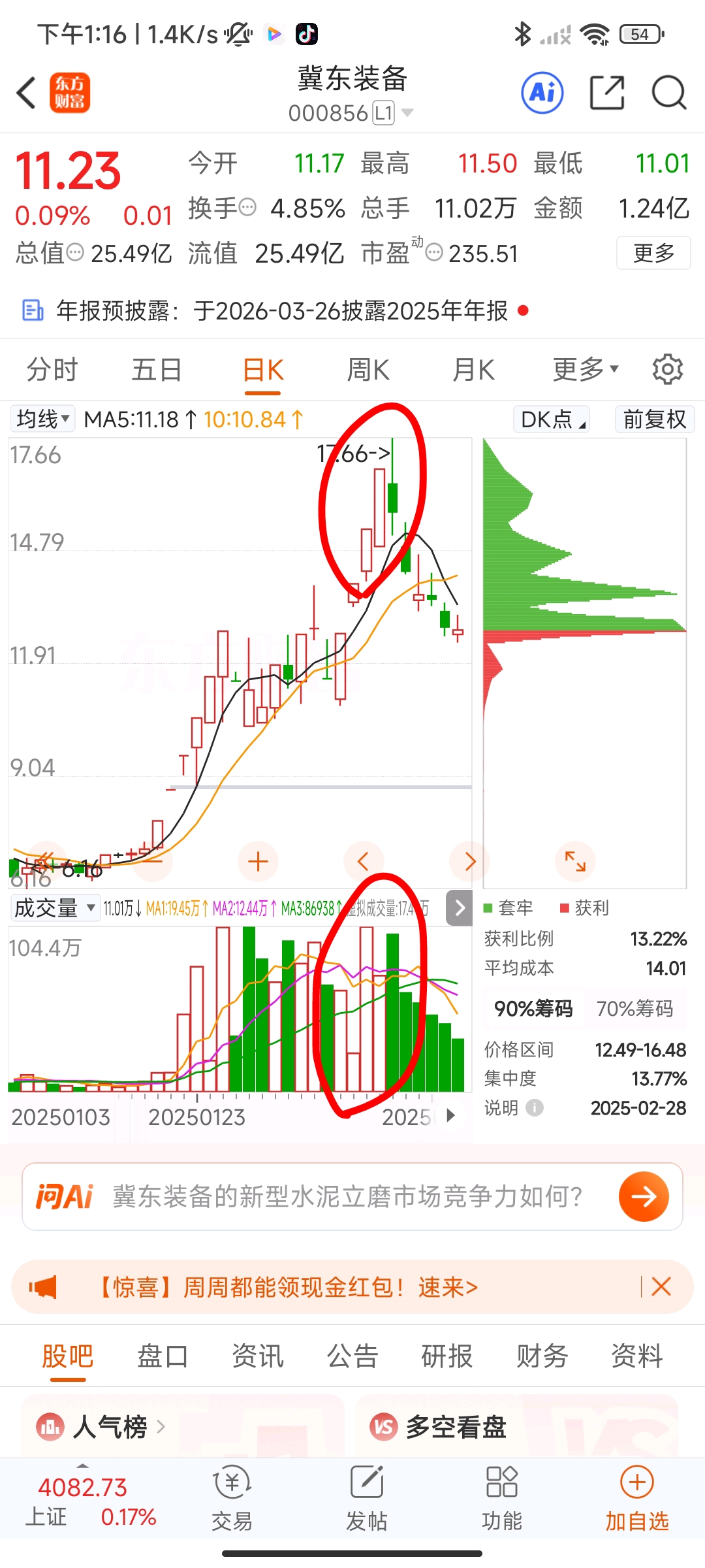 $巨力索具(SZ002342)$ 河北的股票往往具有相似性,你们这群散户永远都看不出来的,今天是最后一天,下周一要直接一字跌停了,自己去参考一下冀东装备,去年的今天也是快过年的时候,量能比例和巨力索具都一模一样,下周一直接大绿棒哦