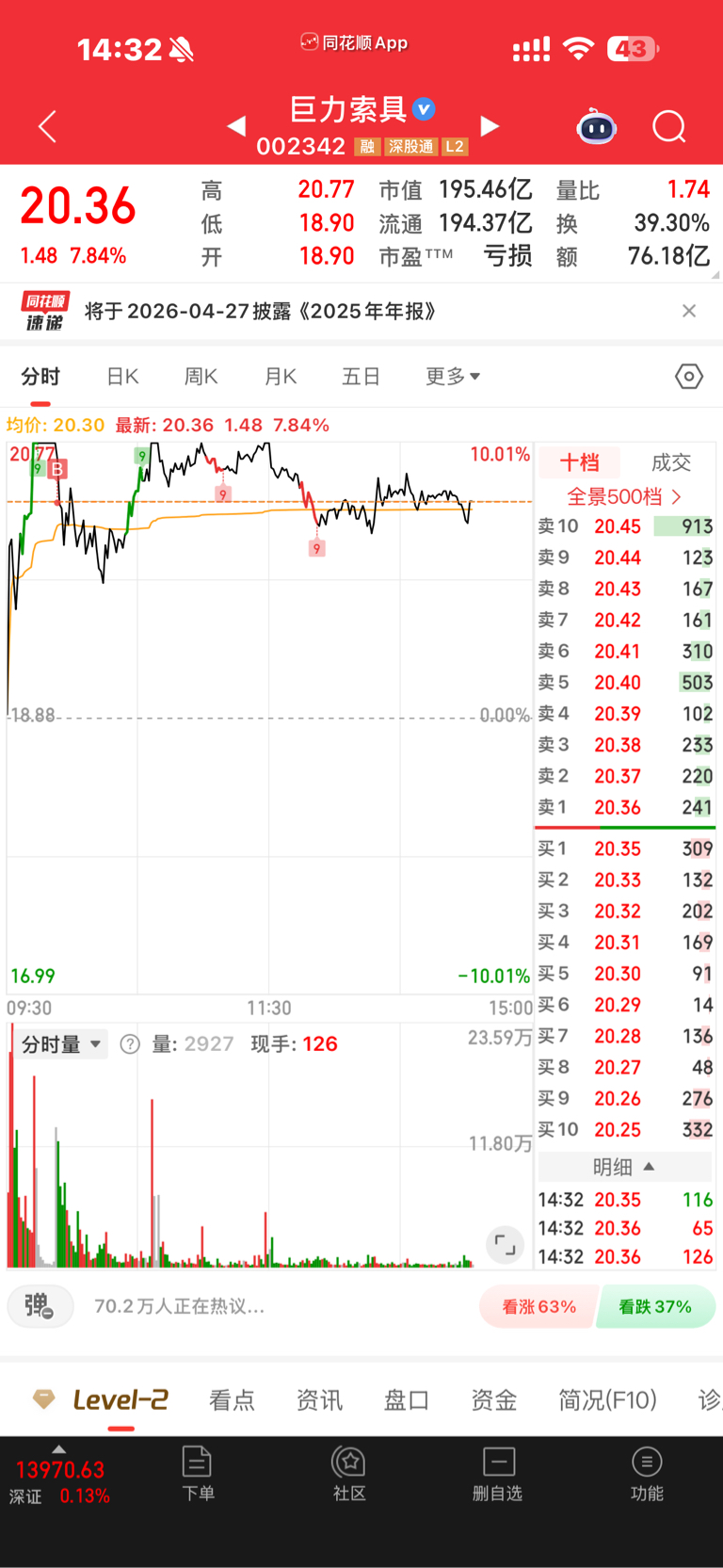 $巨力索具(SZ002342)$ 下周一依旧有行情