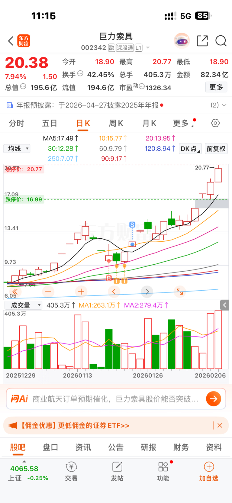 $巨力索具(SZ002342)$ 自从离开你,你知道我这些天是怎么熬过来的……