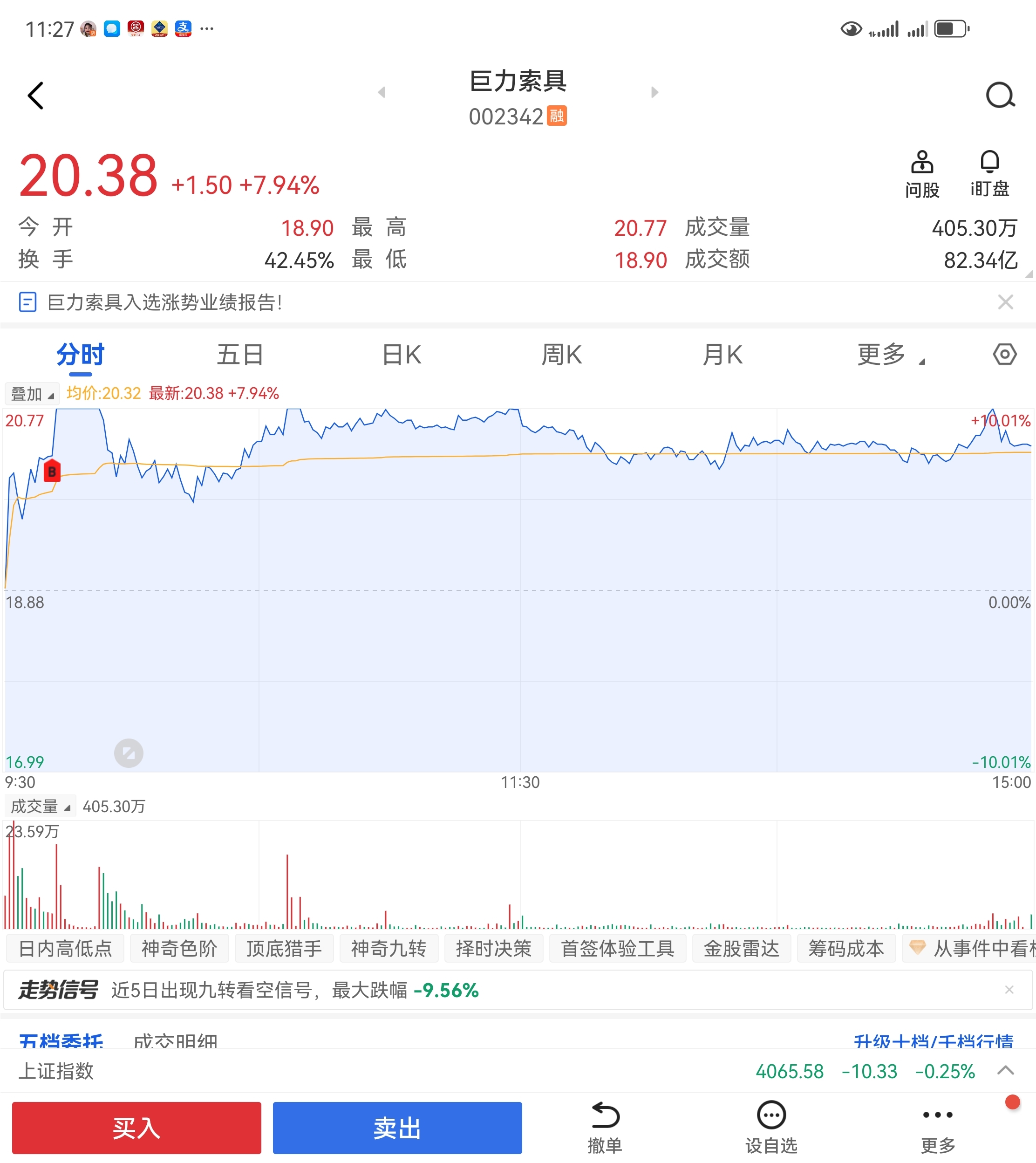 $巨力索具(SZ002342)$ 明天巨量封板,来解救我
