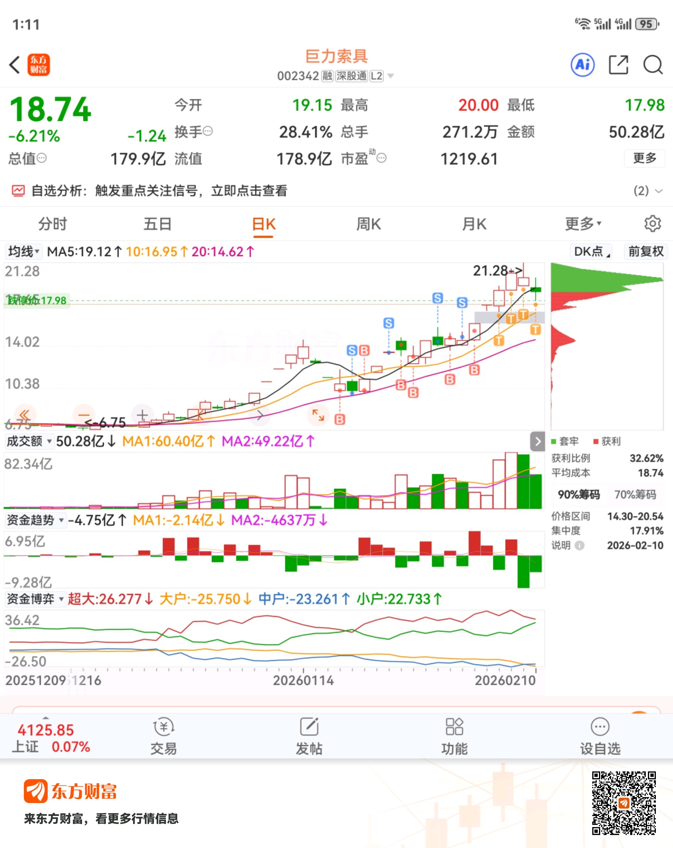 $巨力索具(SZ002342)$ 进的早,不怕洗,今天地板还上了,明天如地板,再清不晚,作为国民,支持国运!贡献些点绵薄之力!