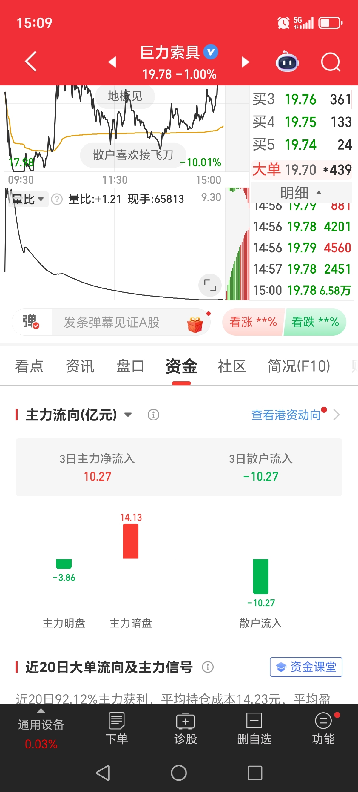 收盘价成功站在5日线之上,尾盘大资金抢筹,不用多说懂的都懂。有人说主力岀货了,给