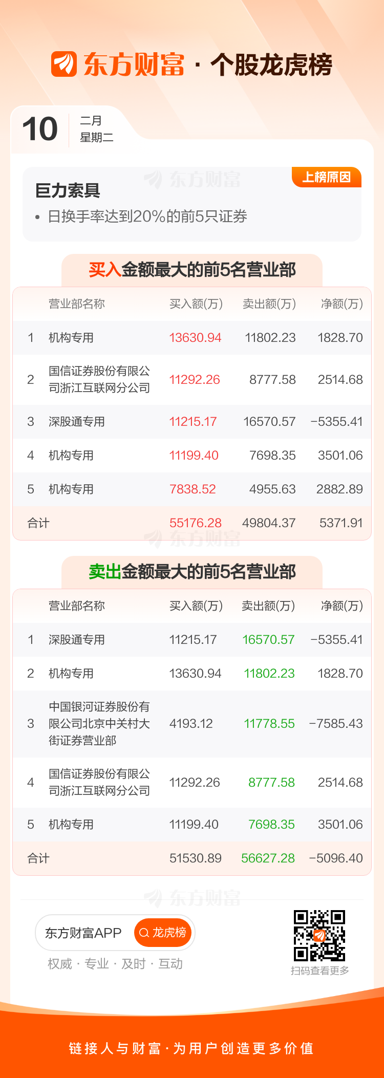 巨力索具(002342)龙虎榜数据(02-10)