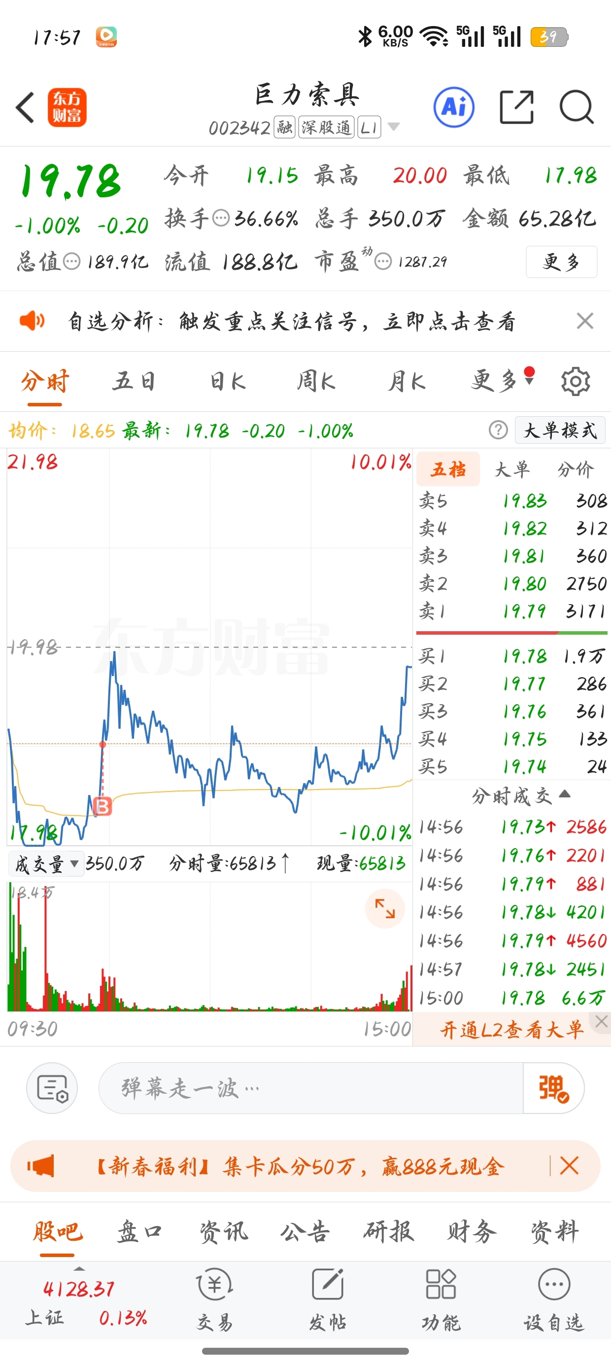 #复盘记录# #实盘记录# $巨力索具(SZ002342)$