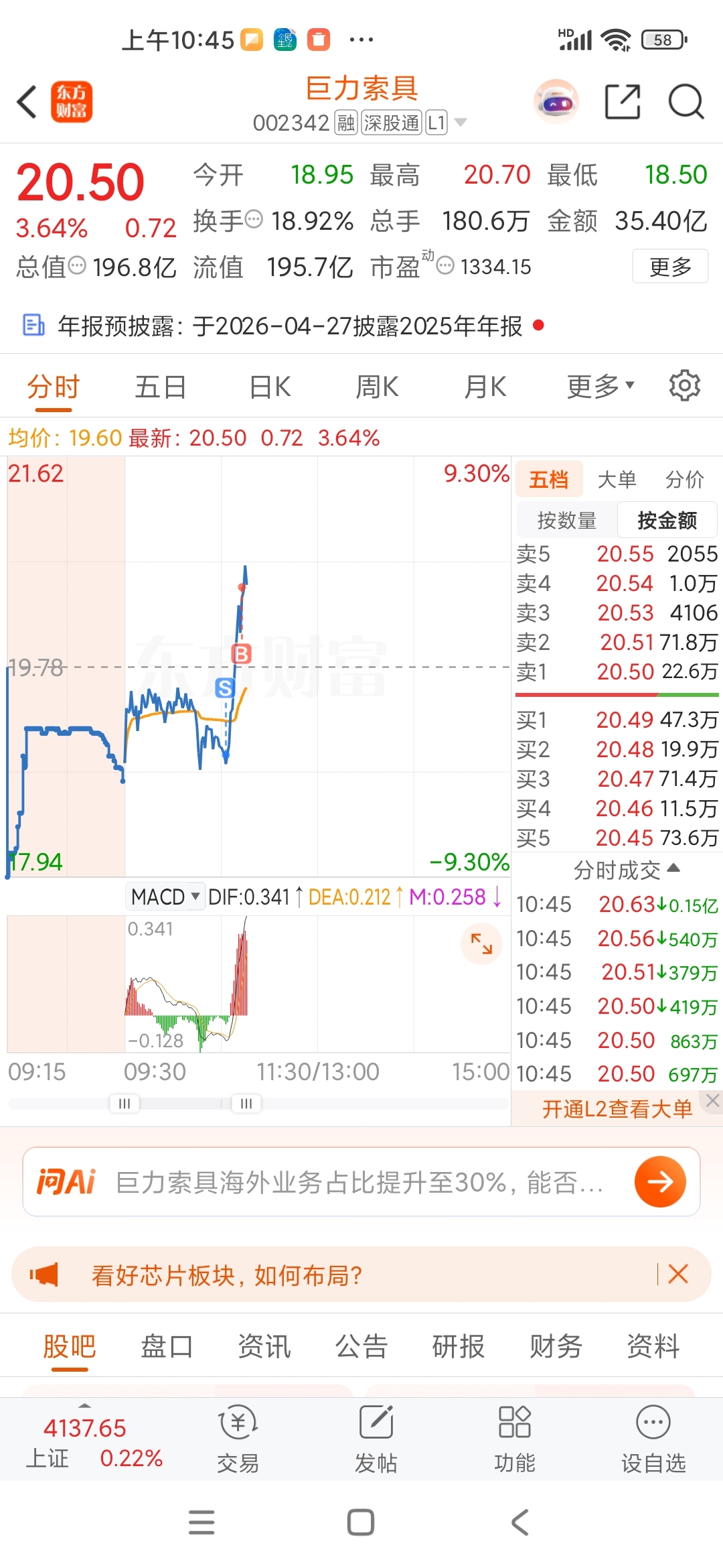温馨提示: 1.根据《证券法》规定,禁止编造、传播虚假信息或者误导性信息,扰乱证券市场;2.用户在本社区发表的所有资料、言论等仅代表个人观点,与本网站立场无关,不对您构成任何投资建议。用户应基于自己的独立判断,自行决定证券投资并承担相应风险。《东方财富社区管理规定》