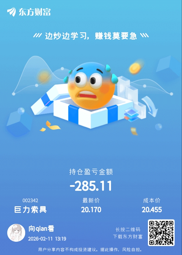$巨力索具(SZ002342)$ 为啥这么磨人呀?这是在出货还是在洗盘呀