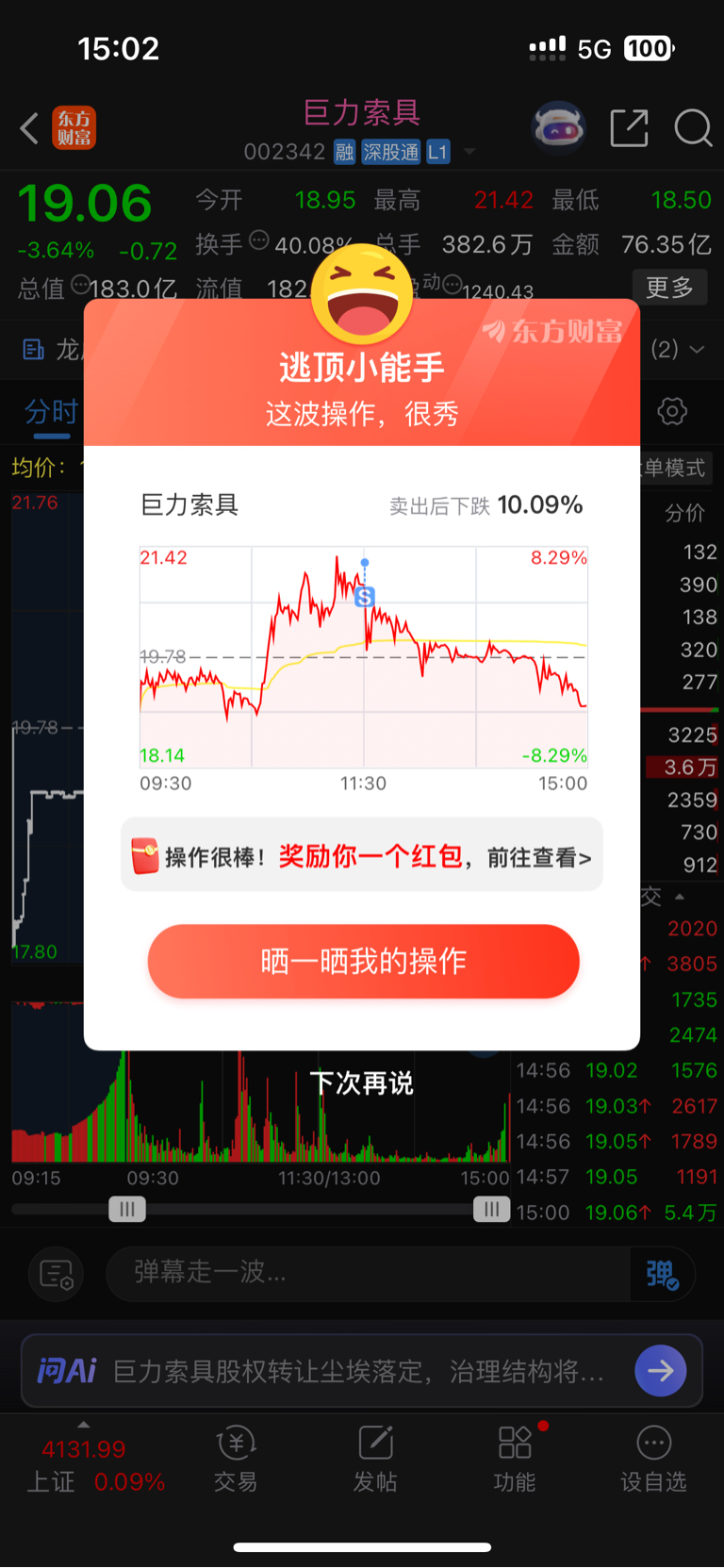 $巨力索具(SZ002342)$ 不求多高 只求赚了跑,会卖才是真理