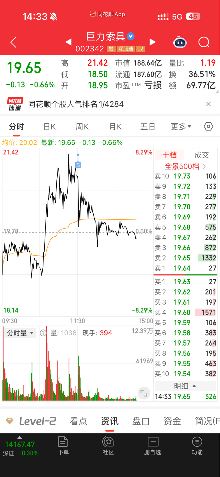 $巨力索具(SZ002342)$ 感谢巨力,昨天跌停买的