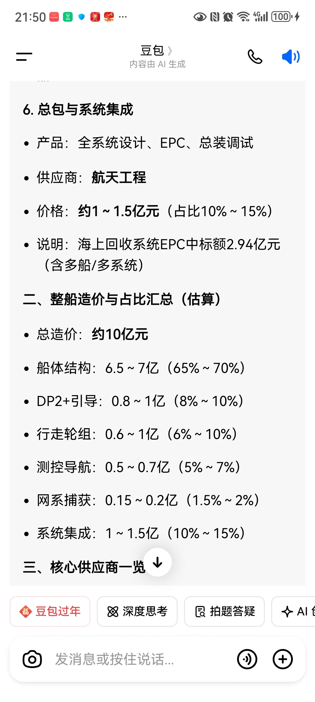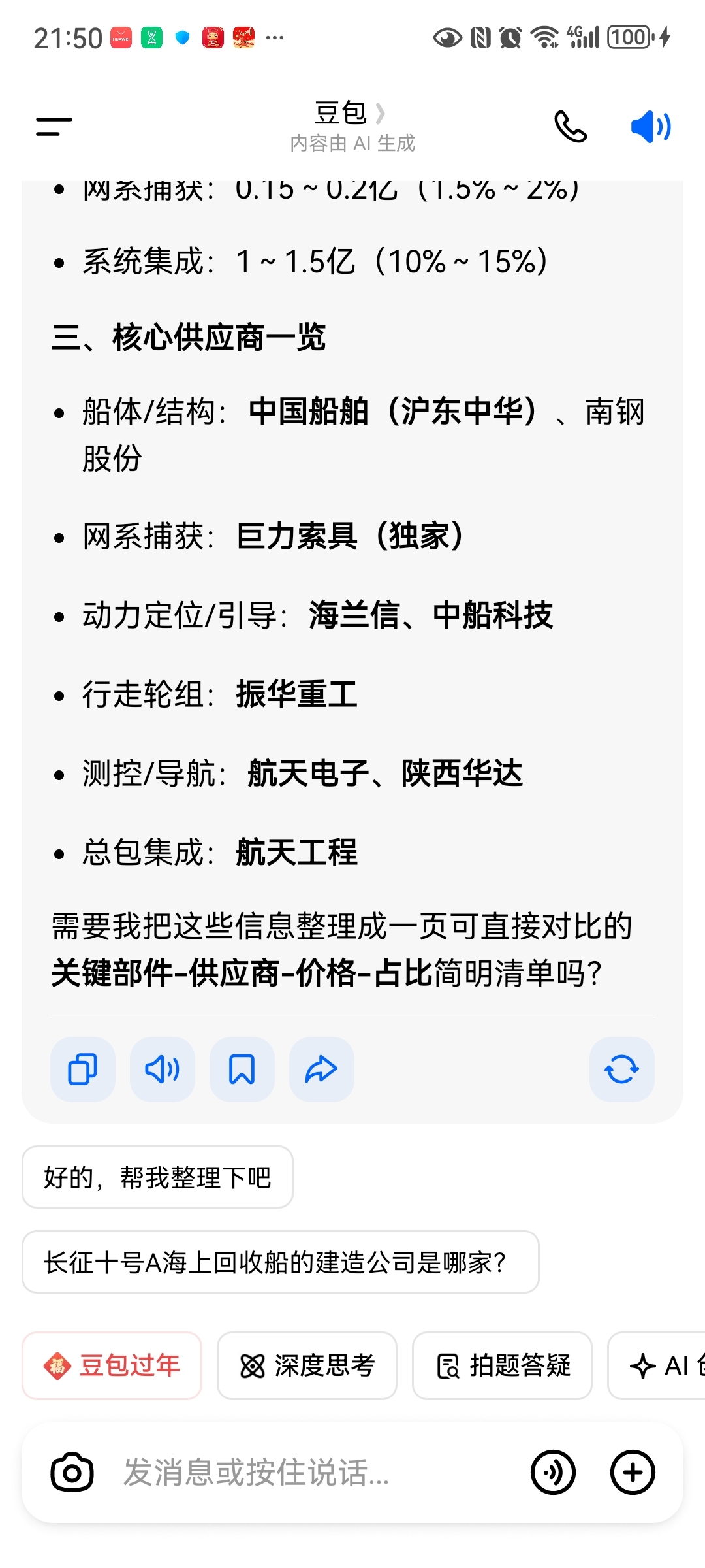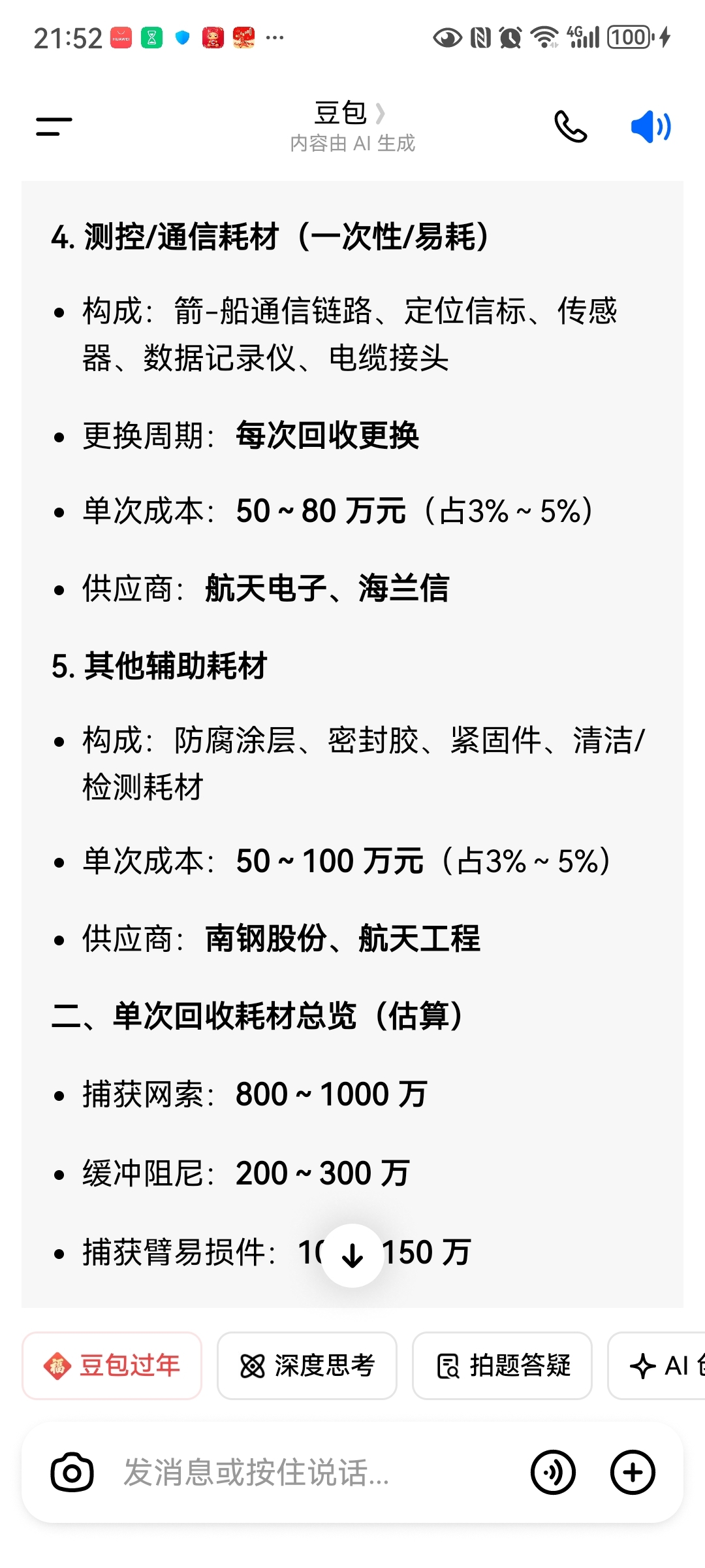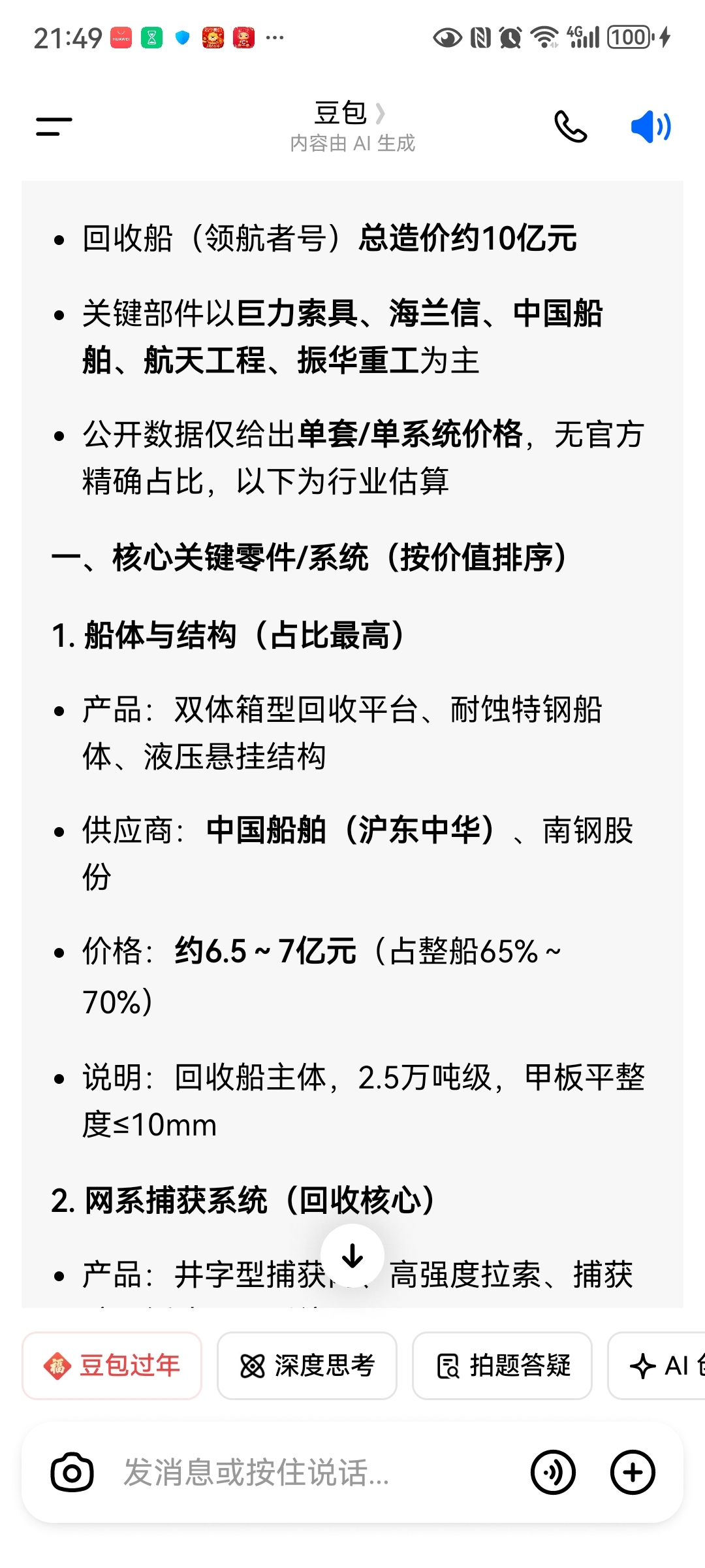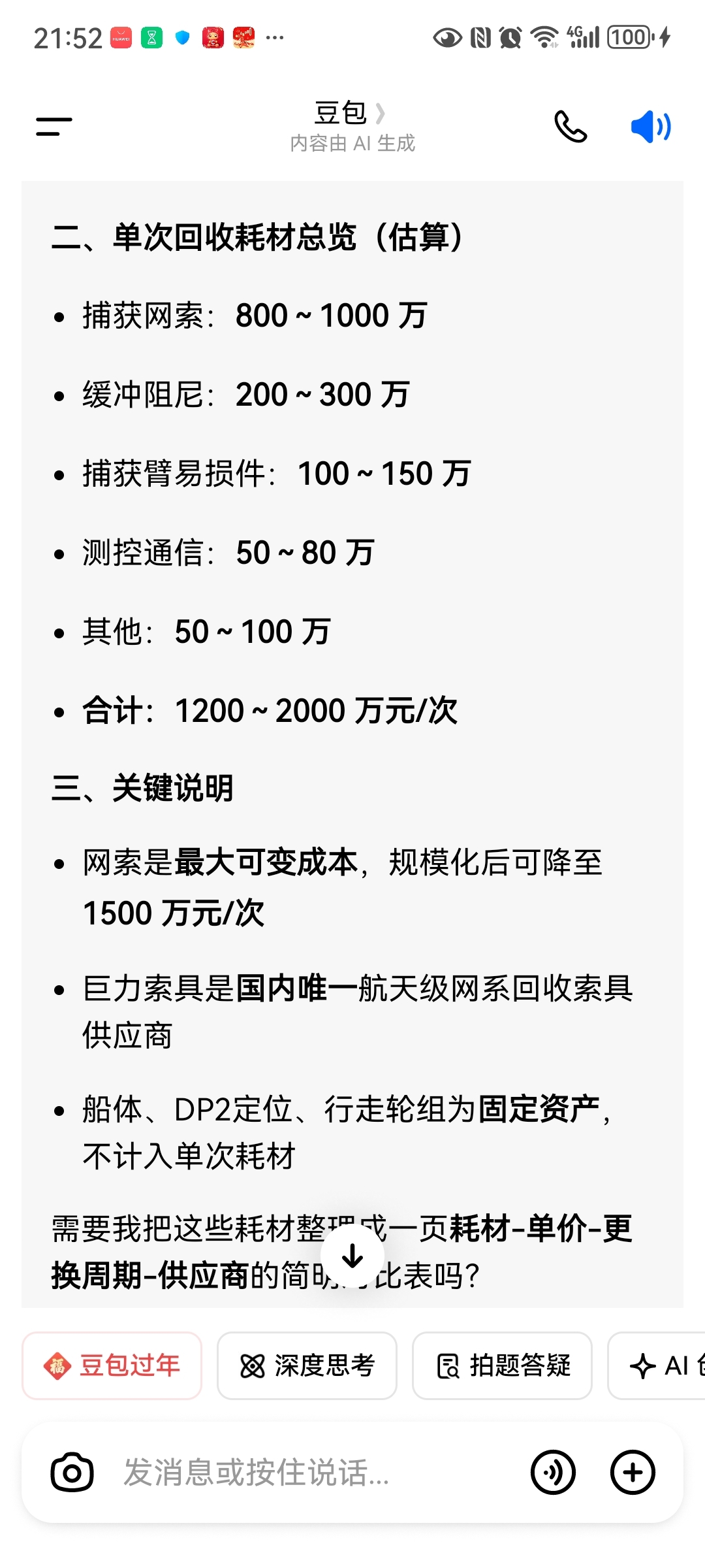 不要给烟雾弹带偏,看看豆包对海上回收船领航者的分析及每次回收的耗材