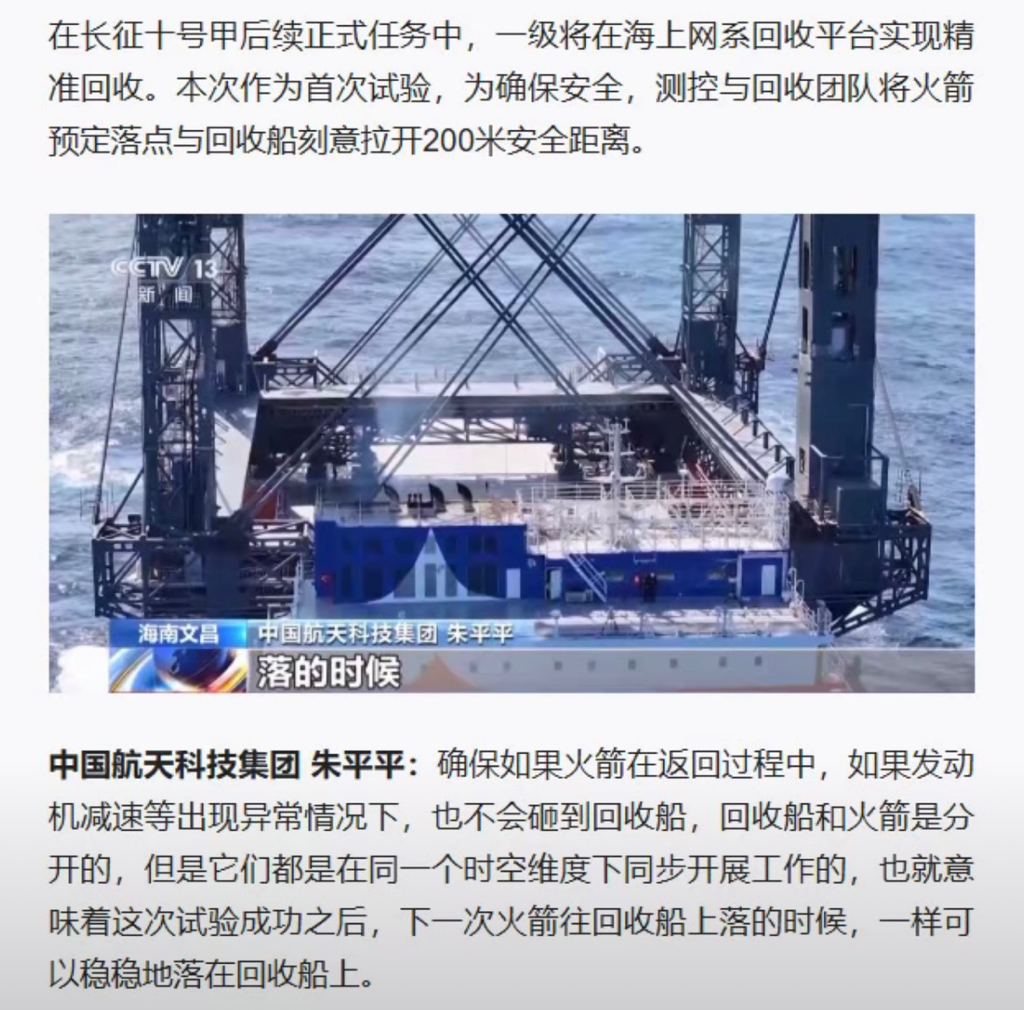 本次试验航天集团已经发文,刻意拉开200米,这次实验只要证明海上回收方法是可行的