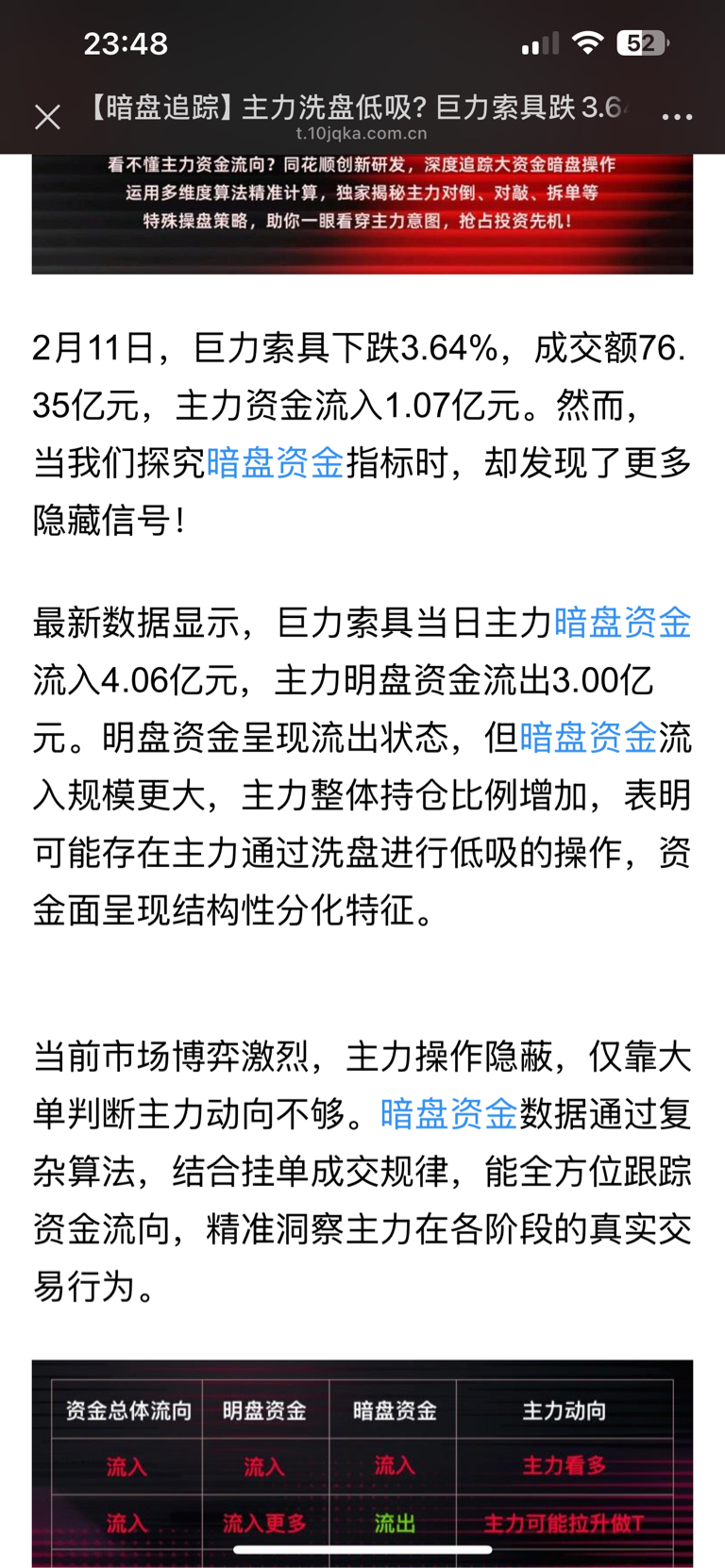 我来说一下我的猜想,今天巨力的暗盘资金流入比明盘流出多,而且尾盘有大单吸筹。那么