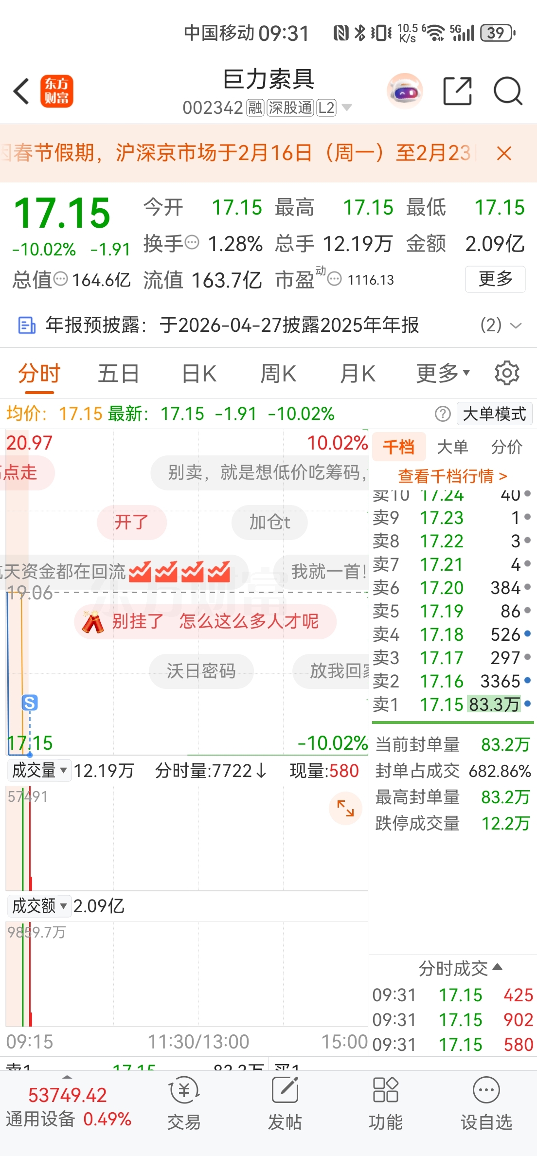 温馨提示: 1.根据《证券法》规定,禁止编造、传播虚假信息或者误导性信息,扰乱证券市场;2.用户在本社区发表的所有资料、言论等仅代表个人观点,与本网站立场无关,不对您构成任何投资建议。用户应基于自己的独立判断,自行决定证券投资并承担相应风险。《东方财富社区管理规定》