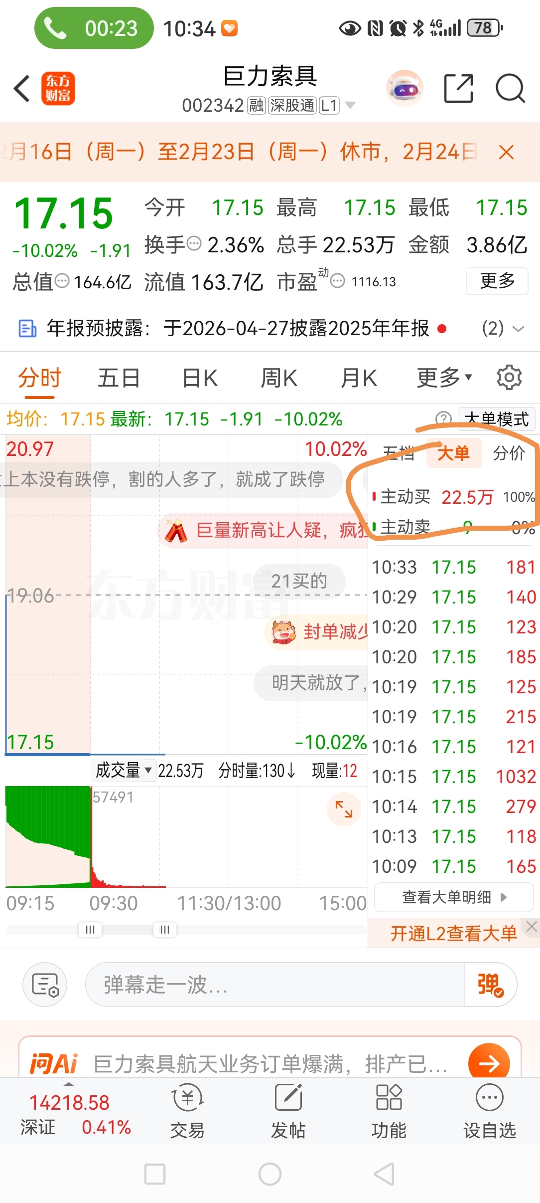$巨力索具(SZ002342)$ 一定反包