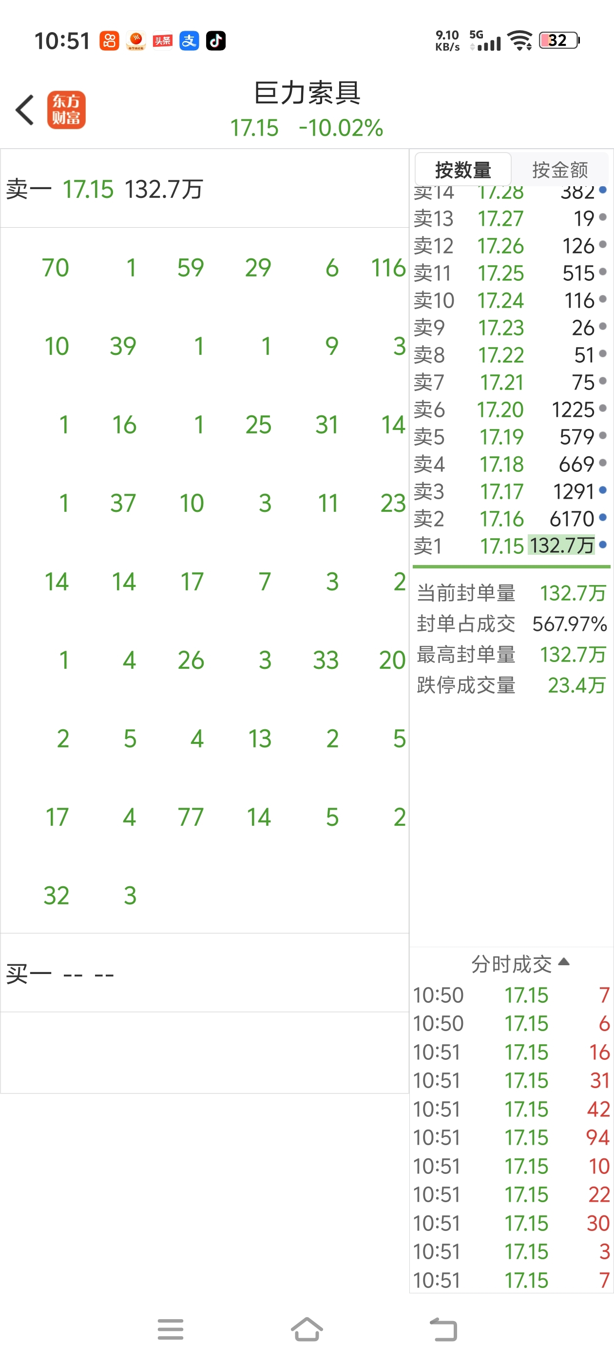 $巨力索具(SZ002342)$ 全是小单前面排,哈哈,