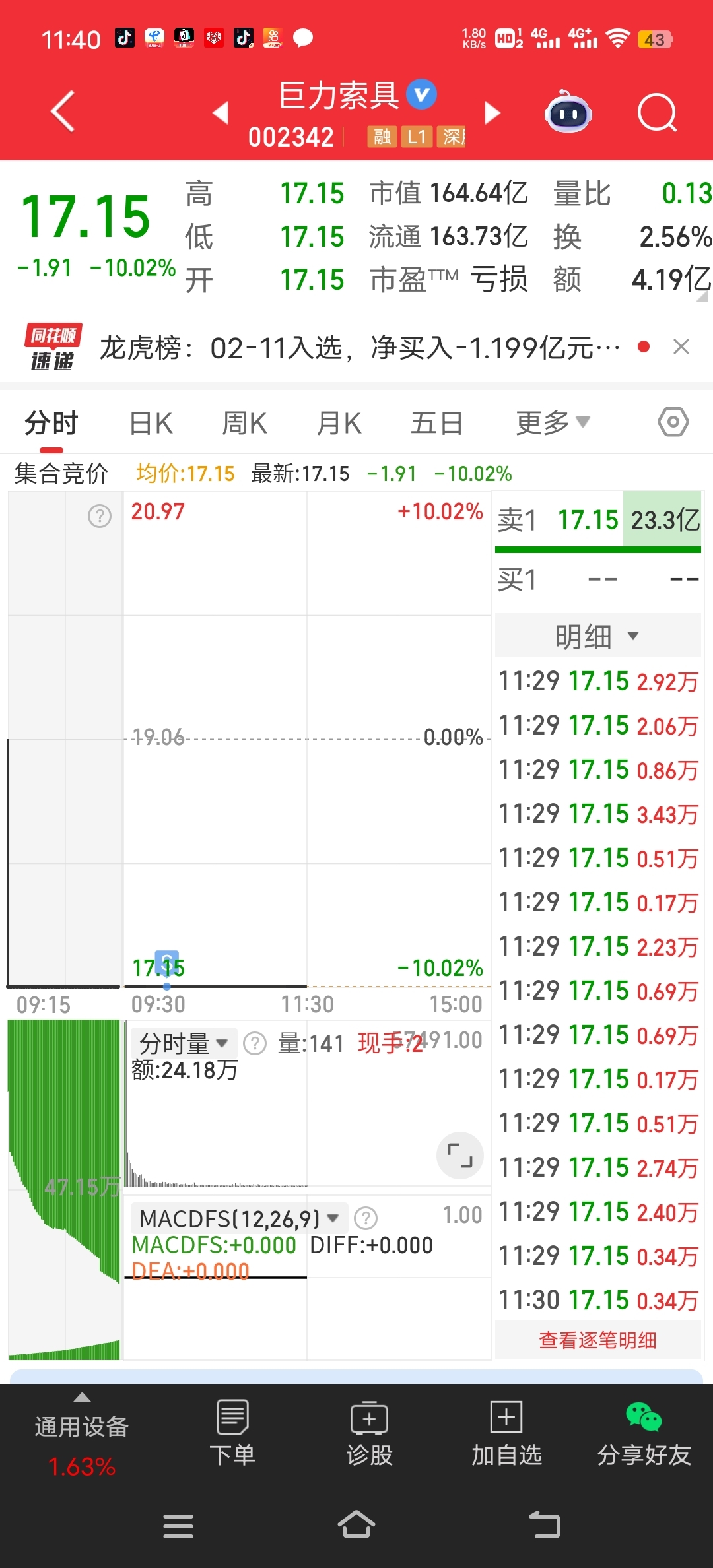 $巨力索具(SZ002342)$ 奶奶滴,昨天19.2买的,今天挨打一个版,我招谁惹谁了,这样子走法
