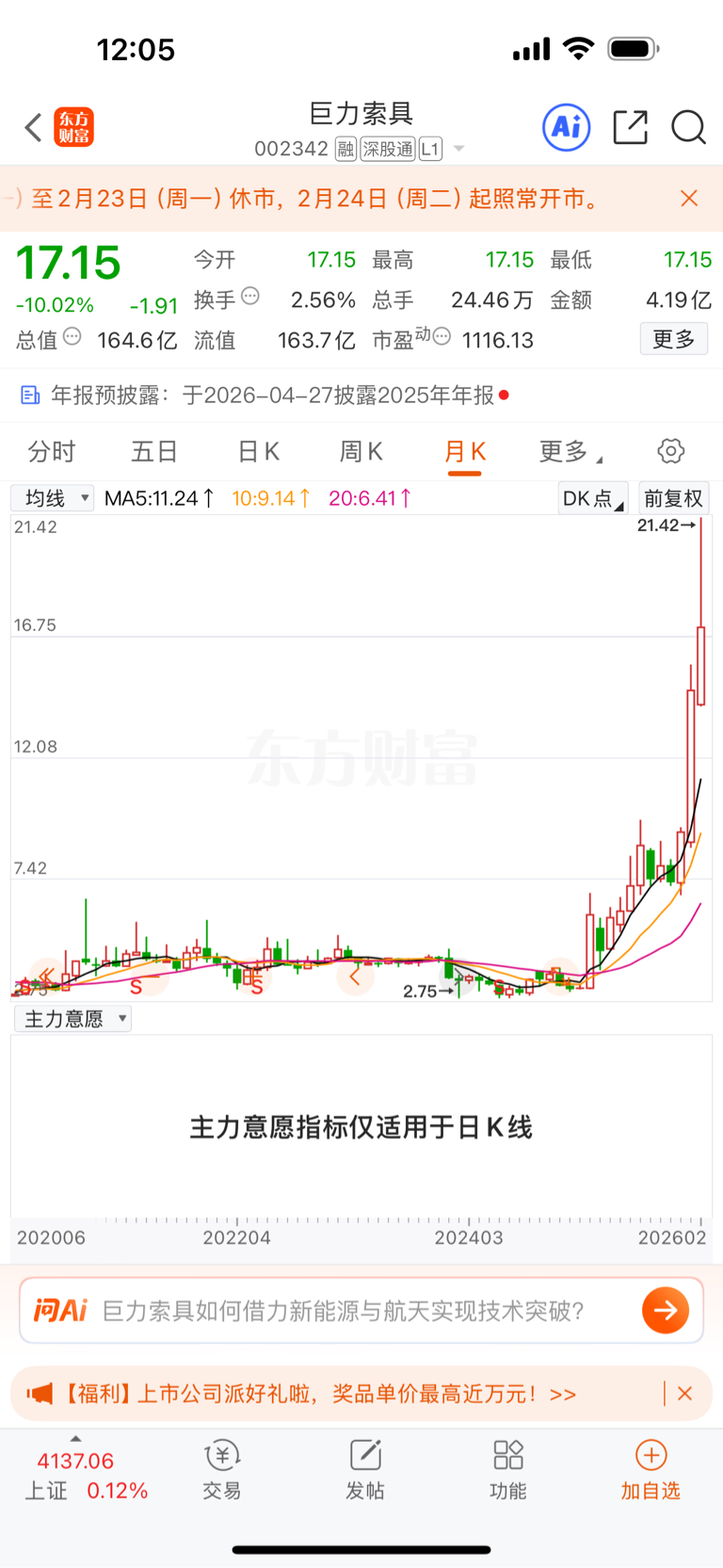 $巨力索具(SZ002342)$ 十年大套