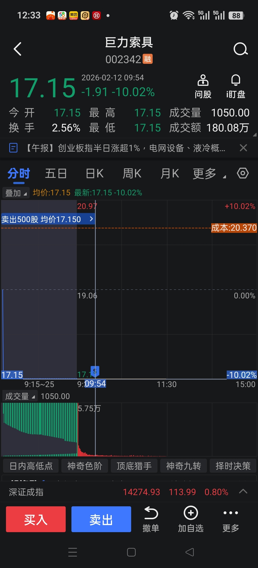 $巨力索具(SZ002342)$ 昨晚上隔夜单 是不是因为我这个单子太小了放出去了 我都没想过今天还能跑的出去