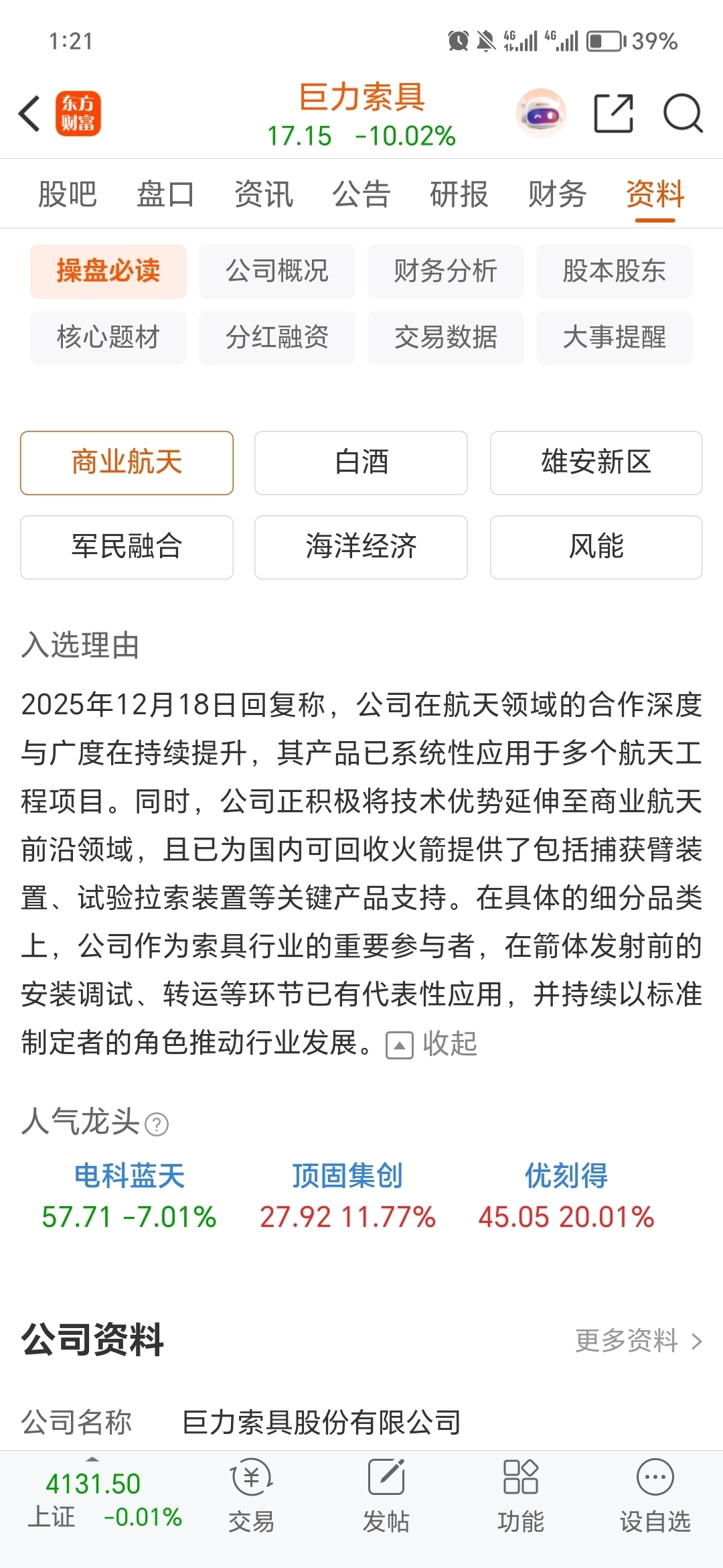 $巨力索具(SZ002342)$ 这是有火箭回收业务没毛病啊