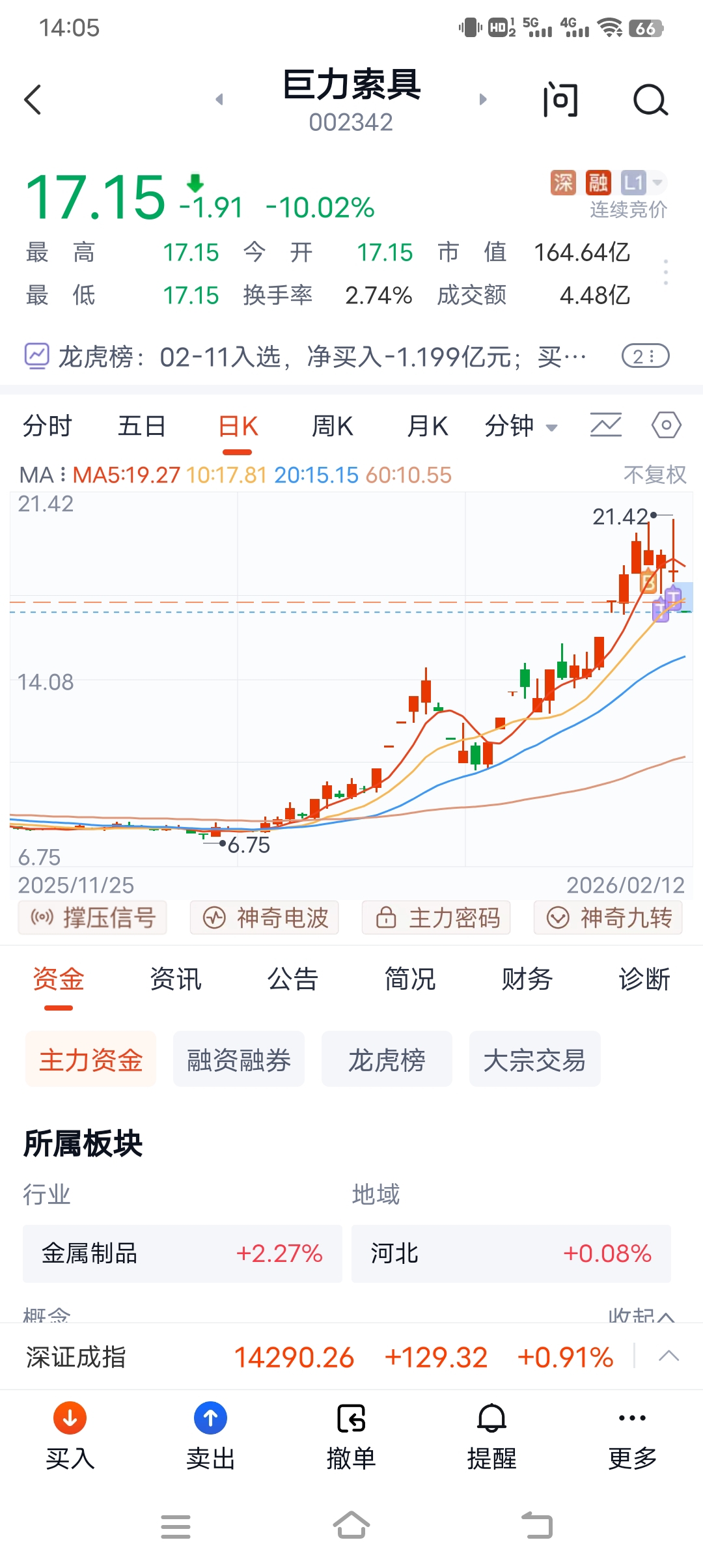 $巨力索具(SZ002342)$ 买在最高点,做了2天T,今天直接给我闷里面了,真好,真舒服!