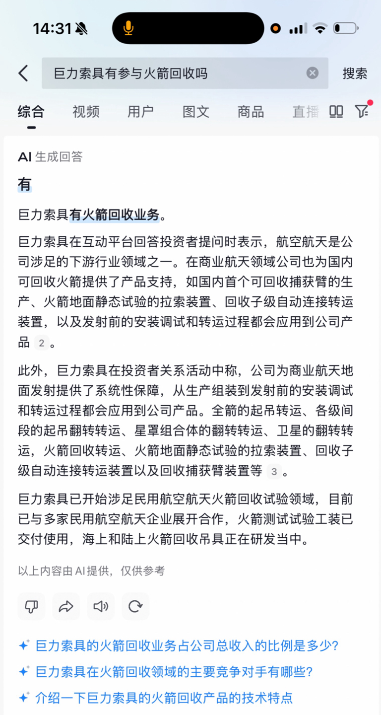 $巨力索具(SZ002342)$ 确定的是你确实参与了商业航天及火箭回收项目,也确实生产了可回收捕获臂和很多相关产品装置,但只不是主要中标方,在这些方面盈利占比低,也不至于直接按死吧