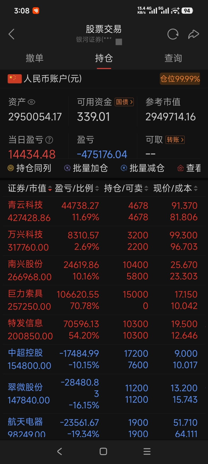 20万利润,今天还剩10万。无所谓,反正每天挂跌停板出!