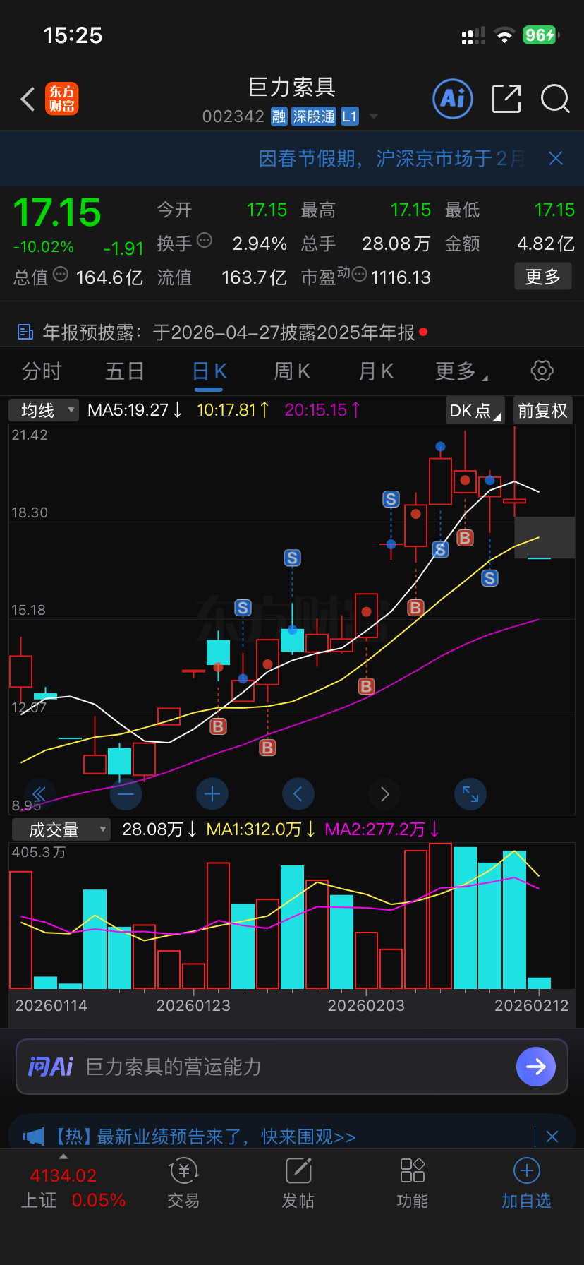 $巨力索具(SZ002342)$ 我每次都吃一口就跑,猪力你怎么套我