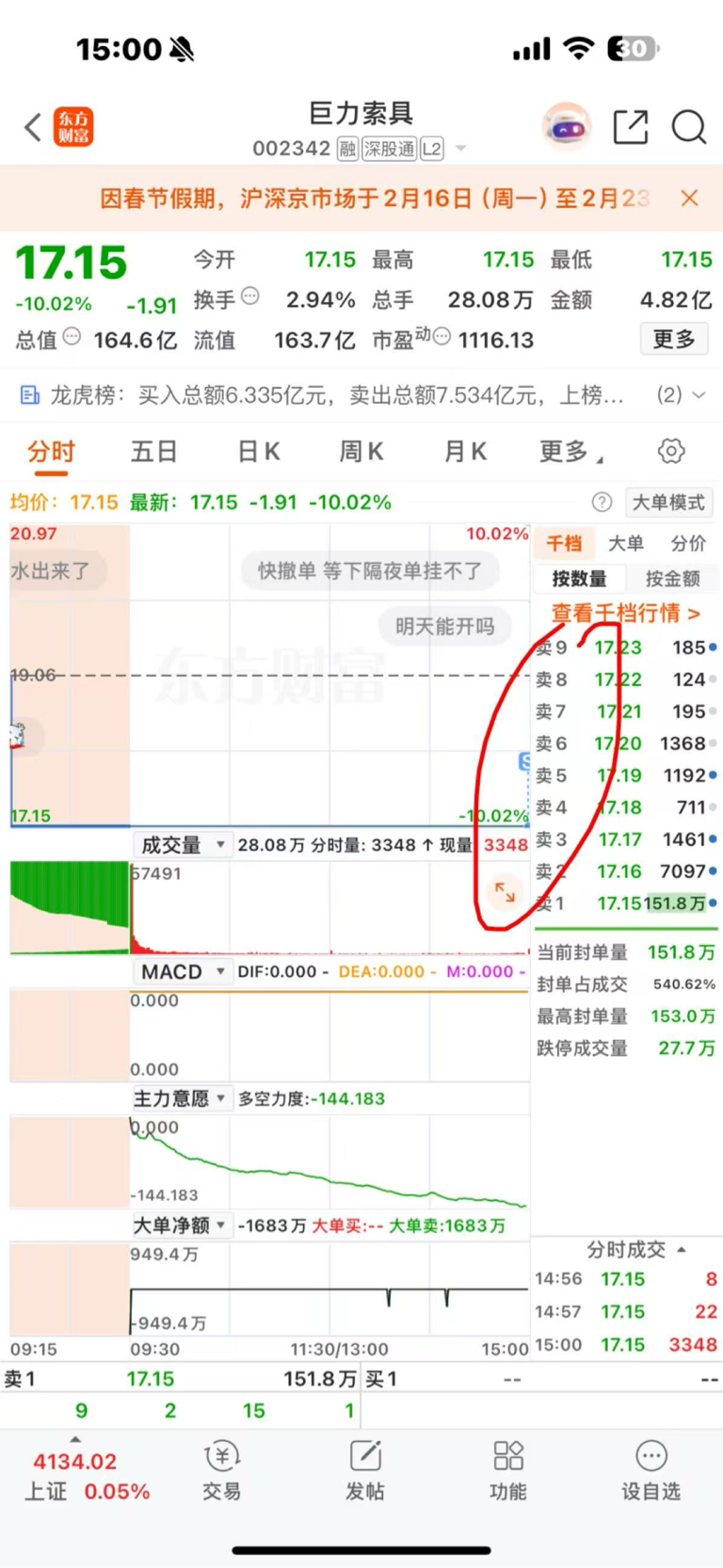 $巨力索具(SZ002342)$ 9.15.01秒按进去的,提前挂单没用,100多家证券公司那1秒内都往交易所报单轮上你?还是相信自己的手速