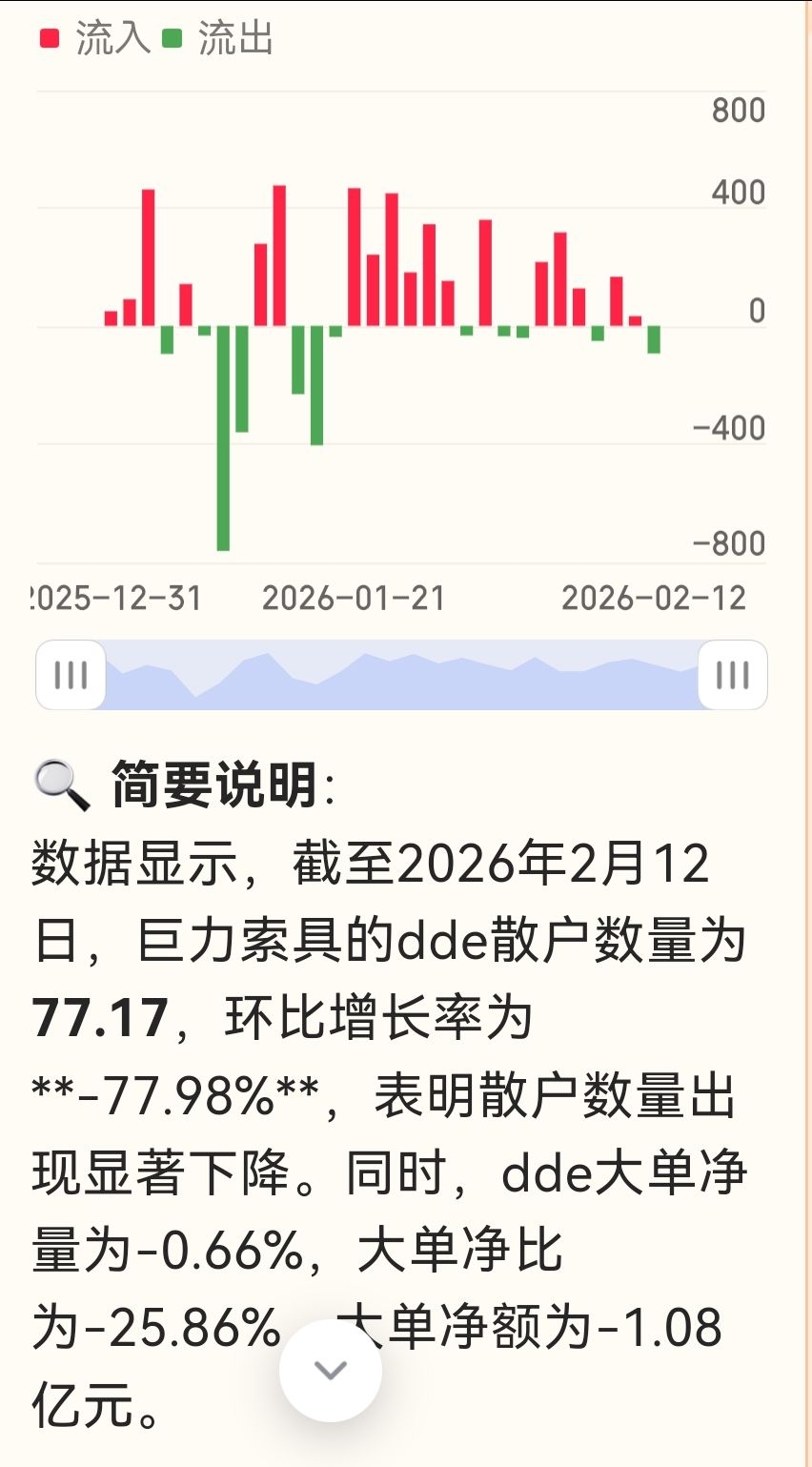 $巨力索具(SZ002342)$ 巨力索具散户数量环比下降78%