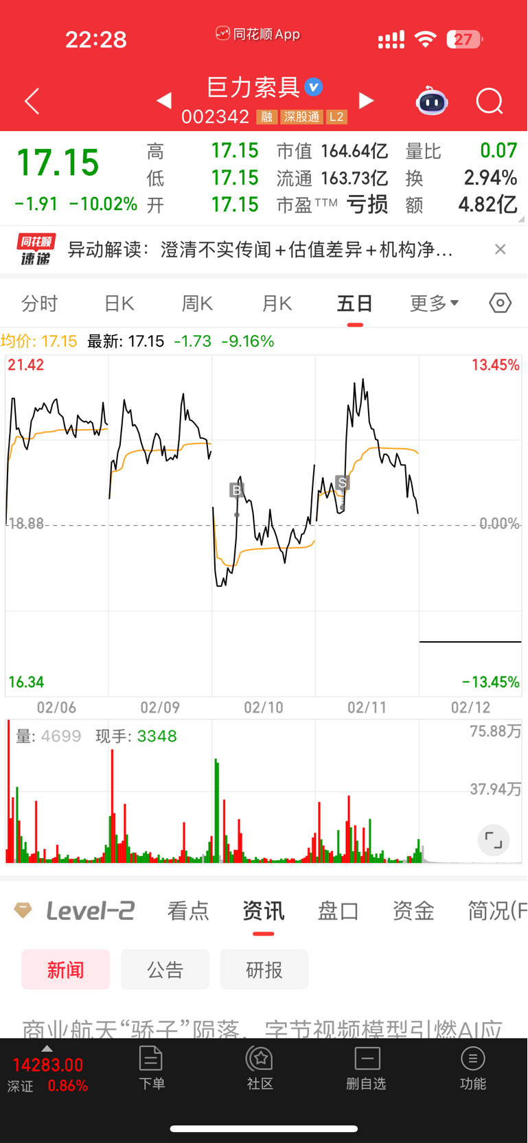$巨力索具(SZ002342)$ 昨天卖飞了还在拍大腿,结果今天跌停了