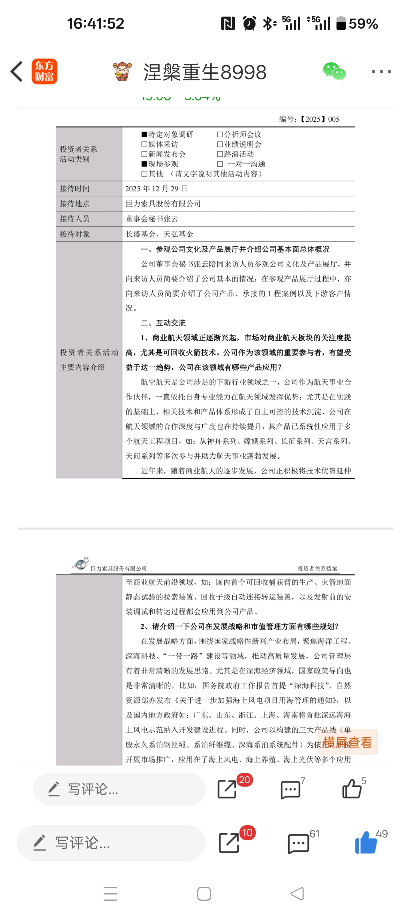 一.刚才致电了巨力索具投资者热线,