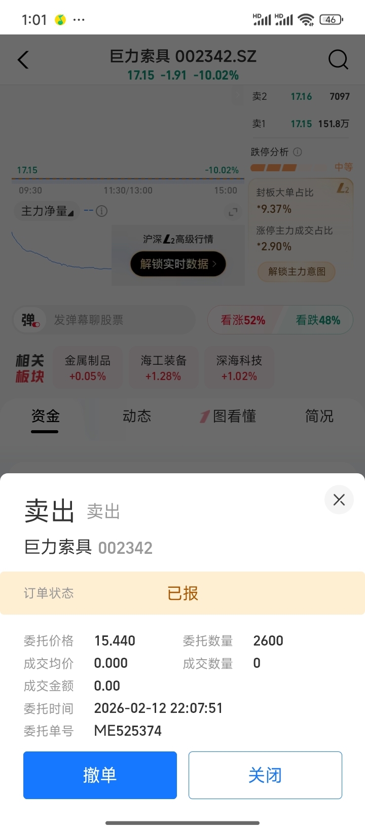 $巨力索具(SZ002342)$ 等节后反包,总之今天挂跌停也要一个板,也取不了钱,也许大家情绪不被公告气到了,年后不踩踏了,还能反包,明天也许也能反包呢,祝大家早点出去,我就不把这门关死了,让外面认进来吧,今天不吃肉,也许以后他们可以吃肉呢
