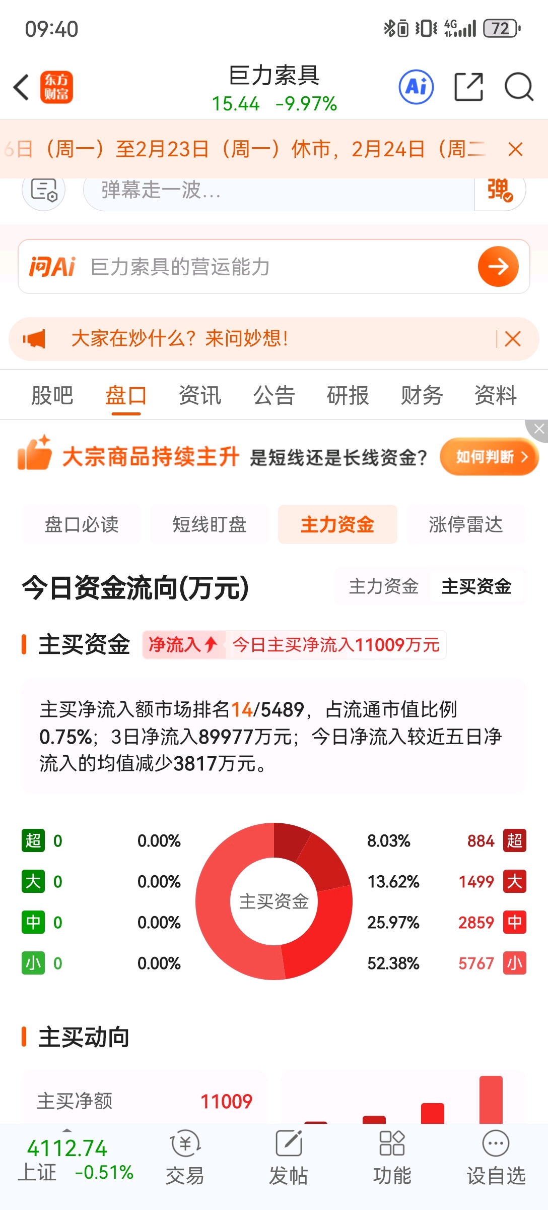 $巨力索具(SZ002342)$ 流入一个小目标了,还不开板吗