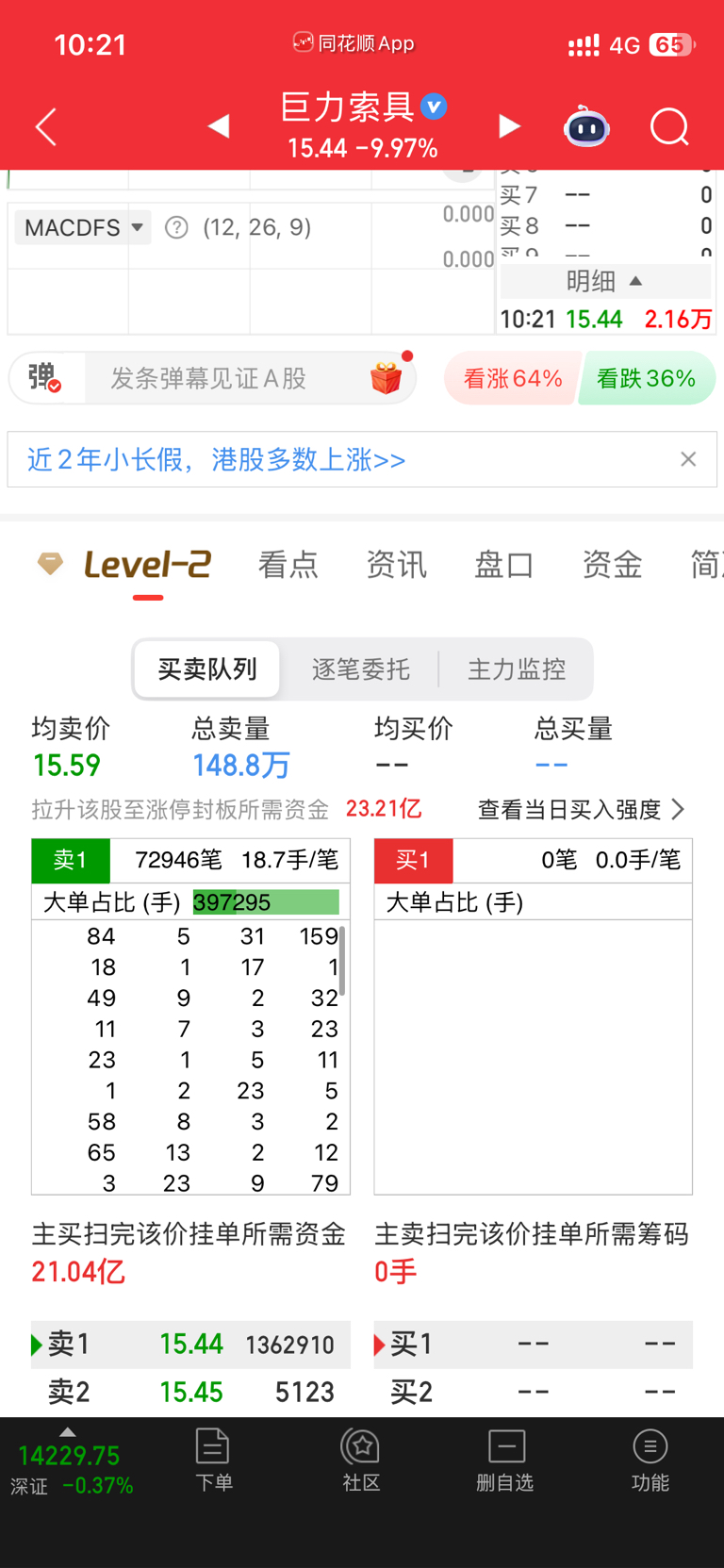 自己看挂单的都是小单,我们不要自己压自己了,主力刚刚已经吃掉10万手了