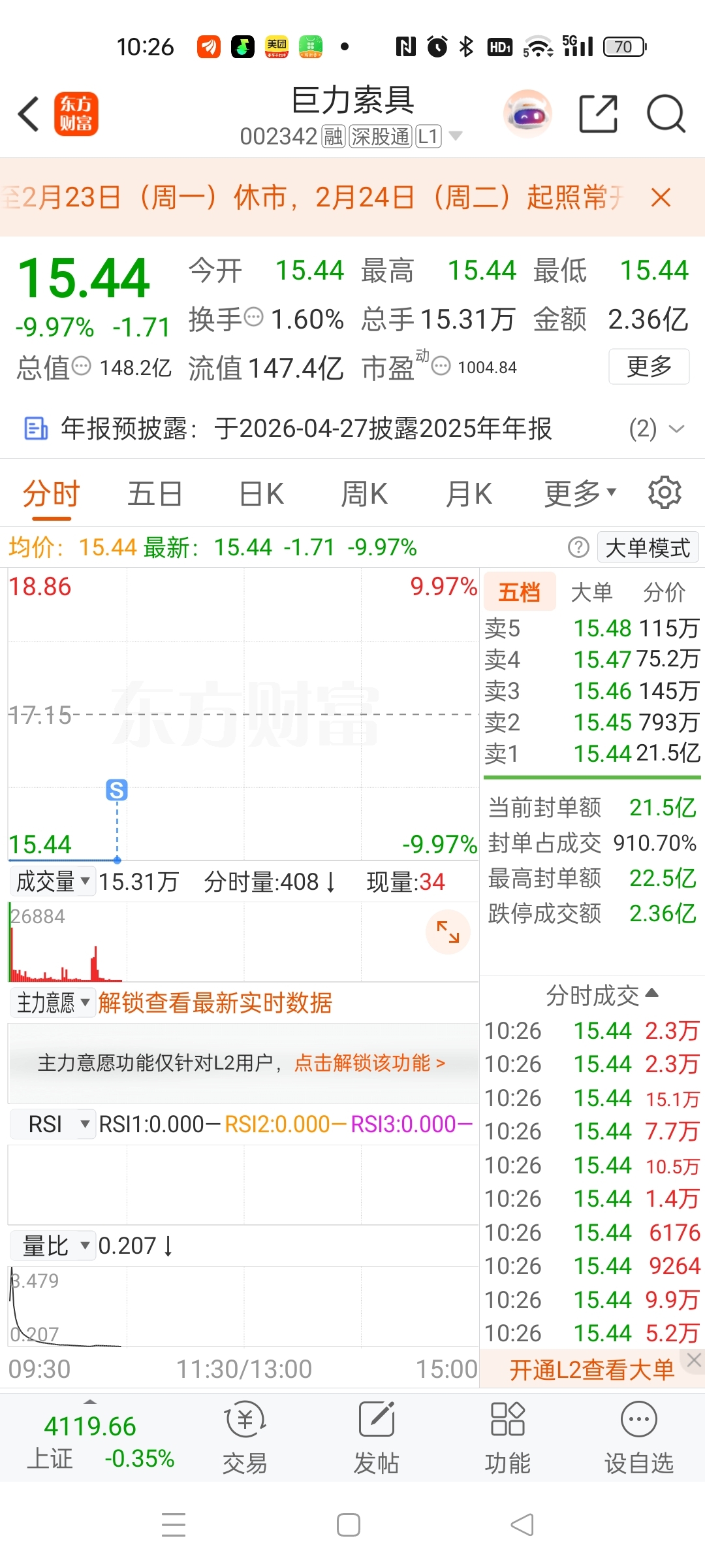 $巨力索具(SZ002342)$ 亏了认了!