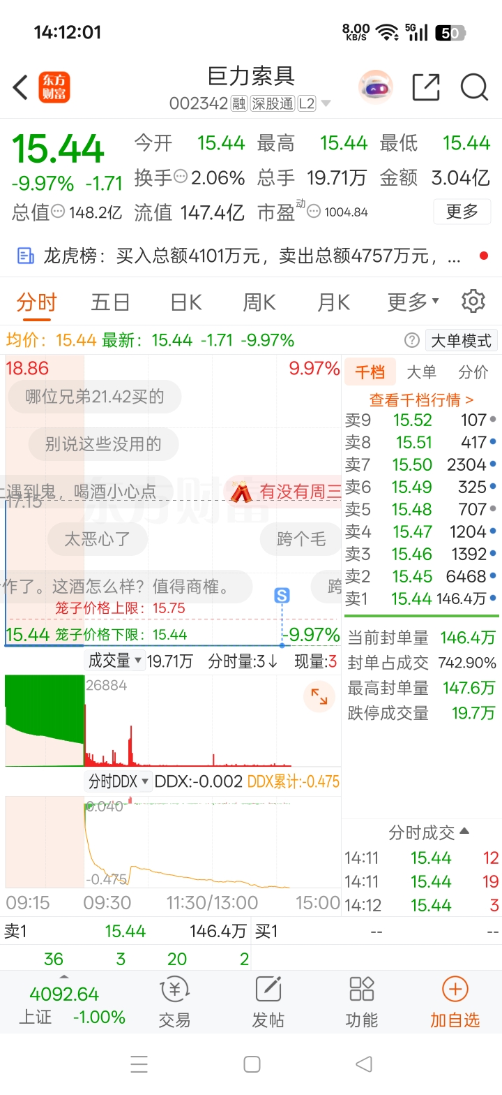 $巨力索具(SZ002342)$ 昨晚7点20挂的单出来了,东财3900多号